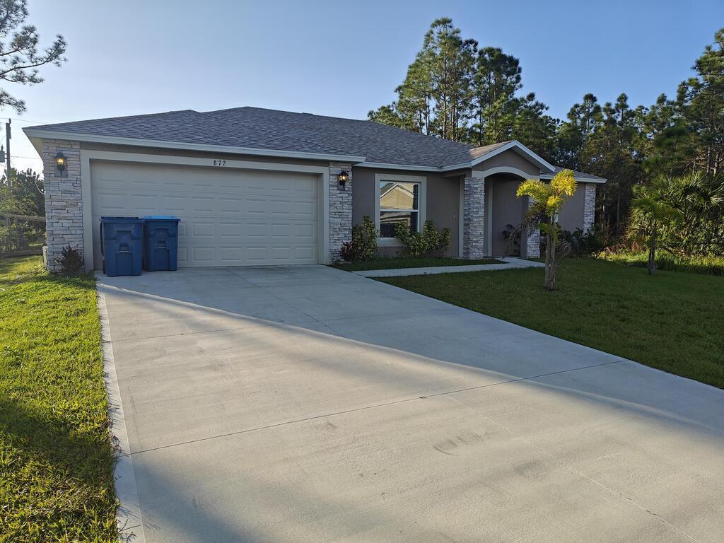 New Tenant Wanted! Newer (2022) Concrete Block Stucco home in SE Palm Bay minutes from Bayside Lakes available NOW! 3 beds, 2 baths, and a bonus room/office! The backyard oasis features a fruit-filled garden and flower/vegetable beds, plus a well and septic system for self-sufficiency. Built-in pest control ensures a serene living environment. Indulge in the luxury of a high-energy-efficient home with a screened porch and a master suite boasting a walk-in glass door shower. The guest room pampers with a soaking tub. The kitchen is a chef's delight with tall cabinets and a sizable pantry.