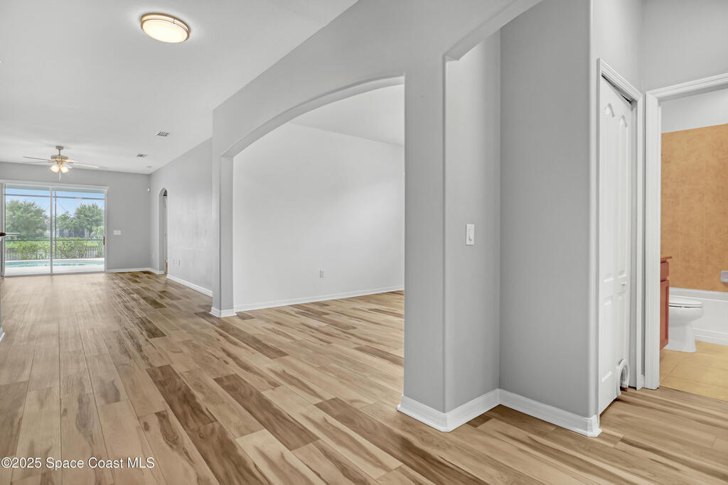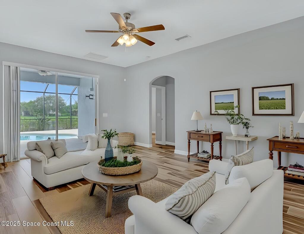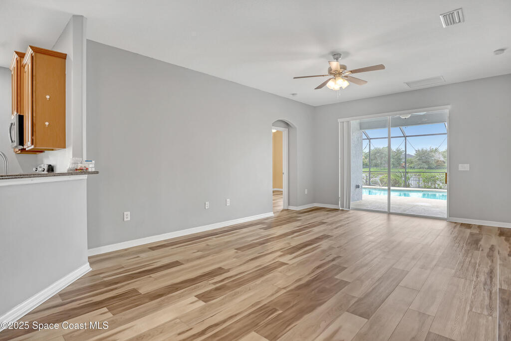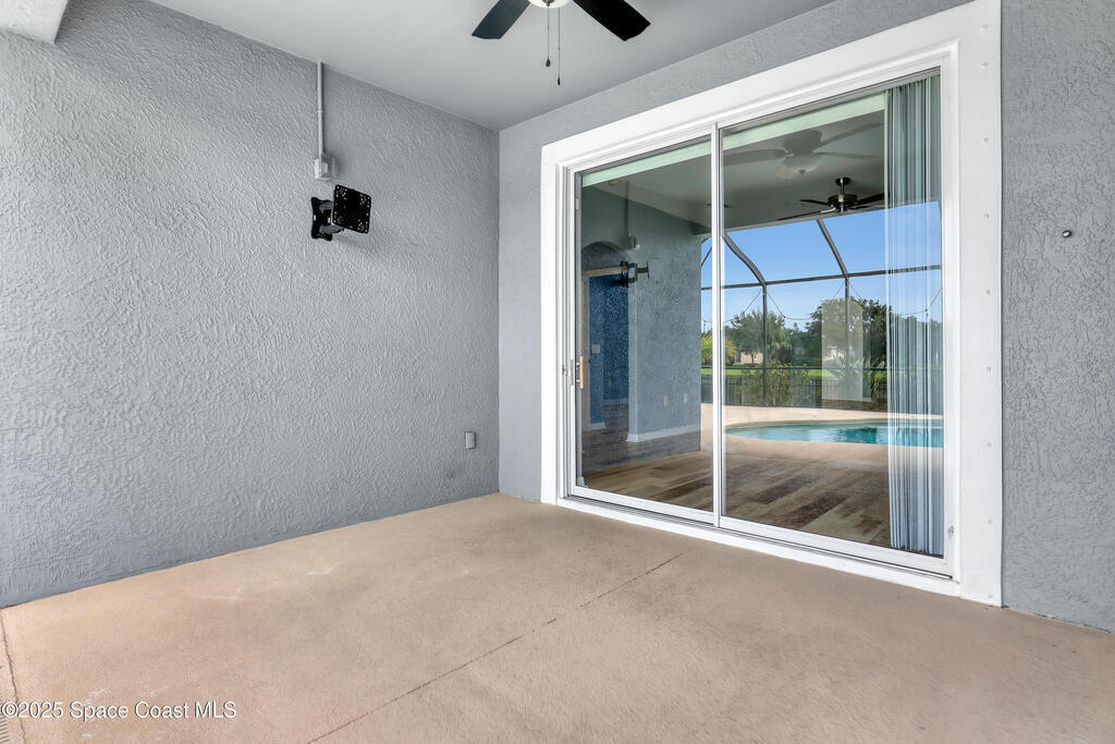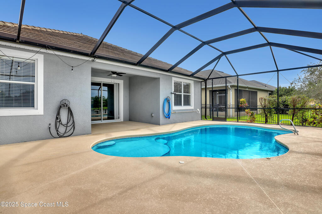 Verbal agreement reached. Awaiting signatures. Lakefront 4 bed 3 bath pool home! Prime location near ''A''Rated Viera Schools & nestled within the highly sought-after gated community of Daintree Subdivision in Viera.This stunning home features a private screened-in pool overlooking serene lake views, creating a peaceful oasis right in your backyard. This outdoor space is perfect for unwinding or entertaining guests. Inside, the open floor plan seamlessly connects the living, dining, and kitchen areas. The kitchen is beautifully appointed with 42'' cabinets, granite countertops, and a convenient breakfast bar. This spacious home offers 4 bedrooms, 3 baths, a dedicated office space, and a two-car garage with overhead racks. The primary suite is a luxurious retreat with a large walk-in closet and a master bath featuring a jetted tub, a tiled shower, & double sinks with granite countertops.