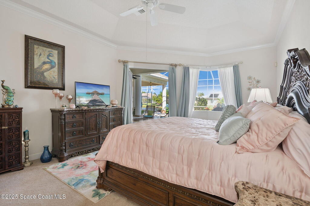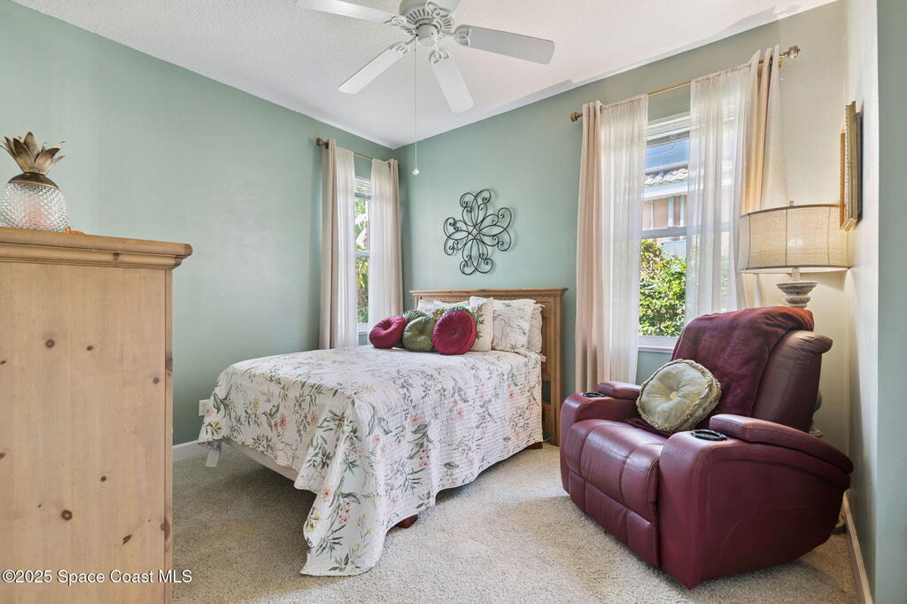 Welcome to luxury living in the heart of Suntree's prestigious gated community, St. Andrew's Isle. This beautifully appointed 4-bedroom, 3-bathroom estate with a 3-car garage offers the perfect blend of comfort, style, and functionality and designed for both entertaining and everyday living. From the moment you step inside, you're greeted by soaring ceilings, natural light, and an open, flowing layout. The formal living and dining rooms offer elegant spaces for hosting, while the expansive family room, complete with built-in speakers, overlooks the private, enclosed pool area for seamless indoor-outdoor living. The open kitchen is the heart of the home, featuring ample counter space, a breakfast nook, and direct views of the pool and spa, creating a true gathering space for family and friends. Tile flooring runs throughout the main living areas, with carpeting in the bedrooms for added comfort. The spacious primary suite is a private sanctuary, offering separate his and hers walk-in