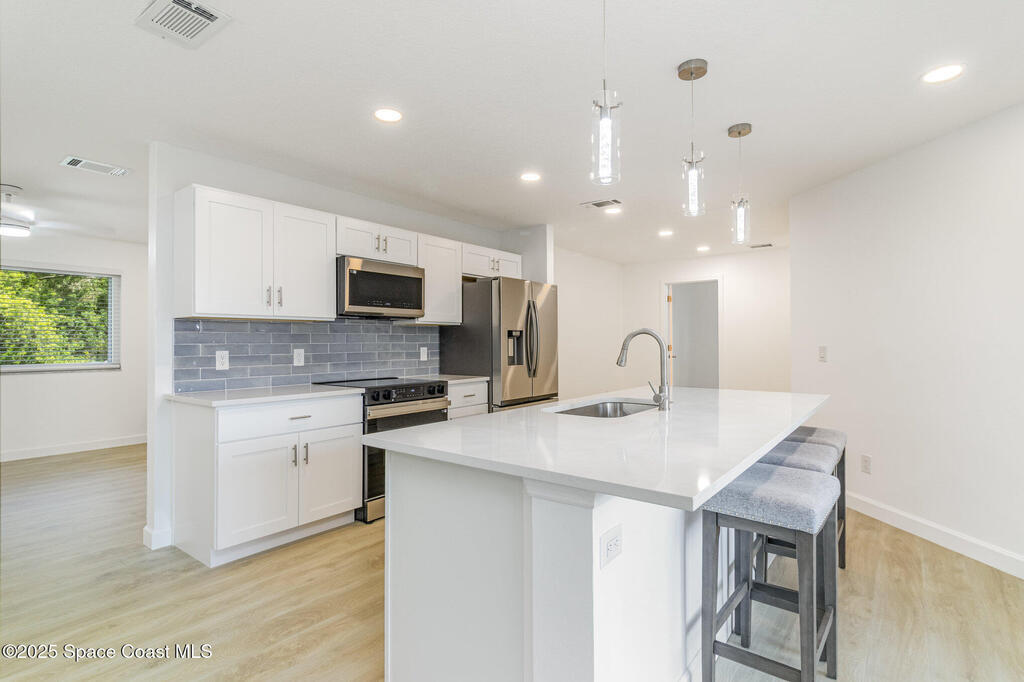 Completely renovated from top to bottom with modern upgrades. This stunning 4 bedroom 2 bath home offers comfort, thoughtful design, & exceptional outdoor living space in a highly desirable location close to schools, Hammock Landing, & quick access to I-95. Step inside to find a brand new kitchen featuring all new stainless appliances, stylish quartz countertops, tiled backsplash, custom cabinetry & a spacious island w/breakfast bar. The eat-in kitchen offers the perfect spot to gather with family while overlooking the beautiful fenced back yard. Enjoy peace of mind w/a new metal roof (2024) and new AC system. The entire home has been tastefully updated with vinyl plank flooring, new doors, windows, & molding throughout. No expenses spared! Both bathrooms have also been fully renovated to include custom tile & updated fixtures. Outside, unwind on the screened-in porch, host gatherings under the large gazebo, or make use of the detached shed for extra storage.