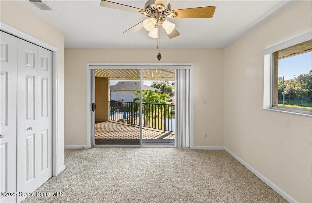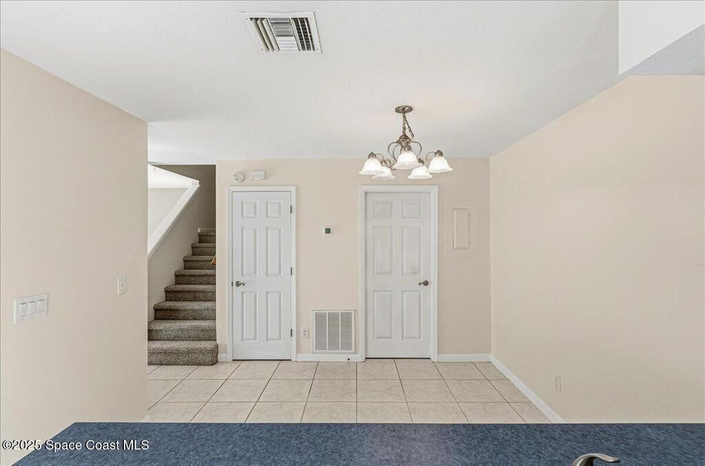 Welcome to your beautiful turn-key townhome condo in a fantastic Rockledge location -- complete with an amazing view from your private upstairs deck!Nestled in the charming Country Woods Village, just north of Viera, this well-maintained townhome offers convenient access to Interstate 95, Orlando International Airport, The Avenue Viera, Cocoa Village, and the beautiful Space Coast beaches.Step inside to a spacious living area perfect for relaxing or entertaining guests. The functional kitchen offers everything you need, along with an ample dining area. Just off the kitchen, you'll find a convenient half bathroom and an indoor laundry room for added comfort.Upstairs features two carpeted bedrooms, each with direct access to the outdoor deck, where you can enjoy peaceful views and Florida breezes.Recent updates include fresh interior paint, ceramic tile flooring downstairs, and carpet upstairs in both bedrooms.Whether you're a first-time homebuyer ready to step into