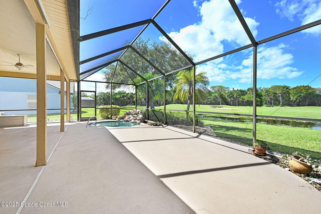 Located in the popular golf community of the Savannahs, this open concept home features 3 bedrooms, 2 baths and a unique grotto heated ''spool.'' Now is the perfect time to put your personal touches on this home with freshly painted interior and create your own style. The home is light and airy with cathedral ceilings and split floorplan. The primary bedroom has sliders to the patio with beautiful views of the golf course. There are his/hers walk in closets, private bathroom with soaking tub, dual sinks and separate shower and water closet. The grotto ''spool'' is heated in the winter, and cool in the summer, providing year-round pleasure without the maintenance of a large pool. The large screened in patio, is an outdoor retreat area to entertain or relax with a front row seat to the 2nd green. Rocket launches from your backyard provide thrill and excitement. Roof is 2017, A/C 2007, 2 car garage and dedicated laundry room. Affordability is possible in this prestigious golf community!