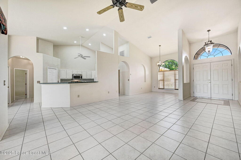 Breakfast Bar , Ceiling Fan(s) , Eat-in Kitchen , His and Hers Closets , Open Floorplan , Pantry , Primary Bathroom -Tub with Separate Shower , Split Bedrooms , Vaulted Ceiling(s)