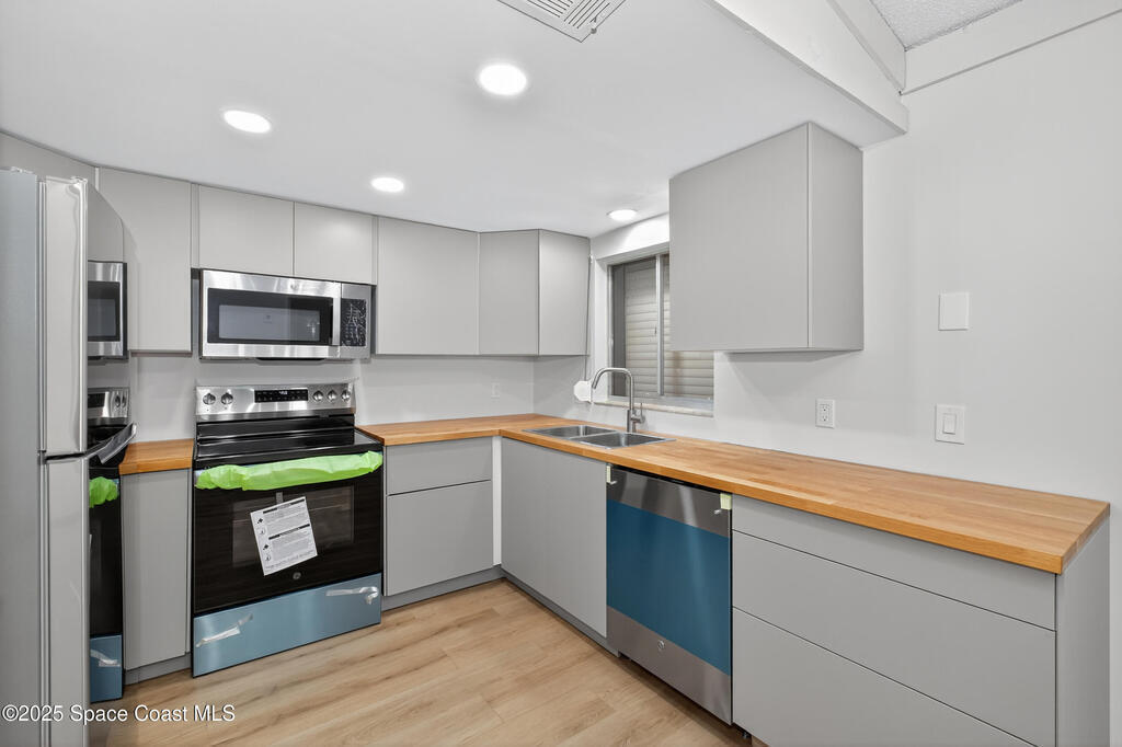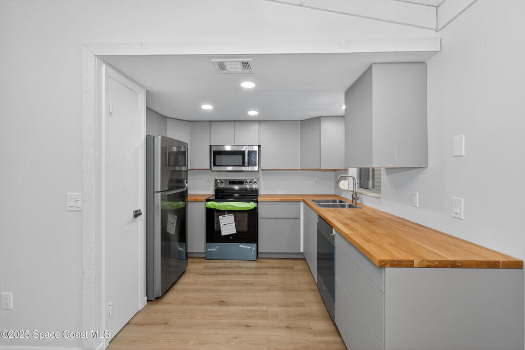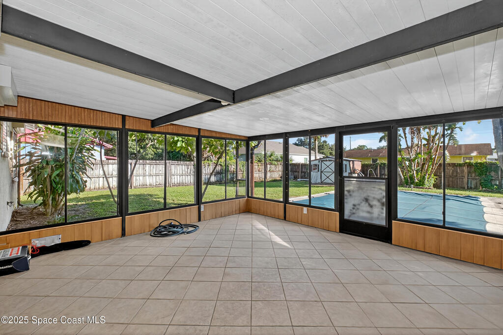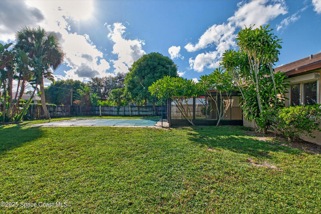 Welcome home to this beautifully remodeled Palm Bay residence! Featuring brand-new floors throughout and a stunning kitchen with new cabinets, stainless steel appliances, and a washer & dryer. The spacious living area boasts high vaulted ceilings that fill the home with natural light. Step outside to your private backyard retreat with a sparkling pool and a fully enclosed patio -- perfect for relaxing or entertaining year-round.Ideally located in Northwest Palm Bay, this home offers easy access to local parks, shopping, restaurants, and major routes including Malabar Rd and I-95. Just minutes from schools, the Indian River, and a short drive to the beaches. Move-in ready and perfect for Florida living at its best!