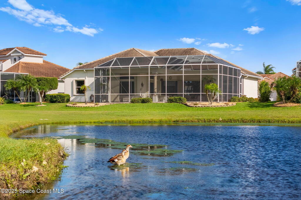 Discover resort-style living in Viera East Golf Club with this beautiful 3-bedroom, 2.5-bath single-family home offering 2,178 sq. ft. of comfortable and functional living space. Built with durable concrete block construction and featuring a BRAND-NEW tile roof, 2021 Water Heater & 2015 HVAC, this home combines quality and peace of mind.Step inside to a split floor plan designed for both privacy and entertaining. The home features formal living and dining rooms for gatherings, along with a spacious kitchen showcasing granite countertops, ample cabinetry, and views of the pool and golf course. The primary suite offers a relaxing retreat with direct access to the screened patio and a large walk-in shower.Outside, enjoy true Florida living on the screened lanai with a sparkling pool and spa, overlooking serene golf course and water views; the perfect backdrop for morning coffee or evening sunsets.