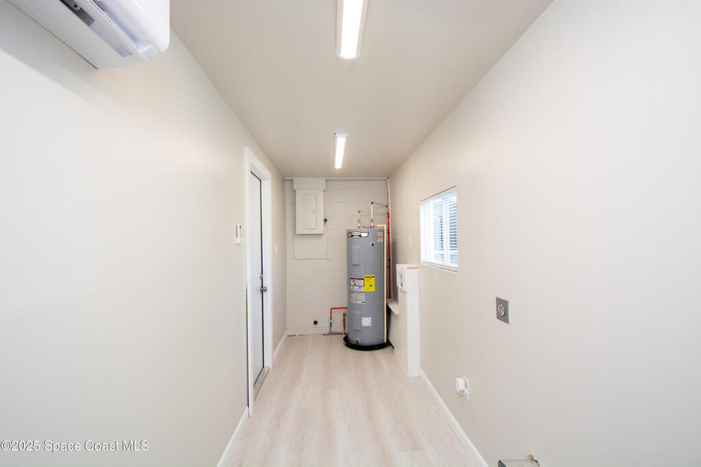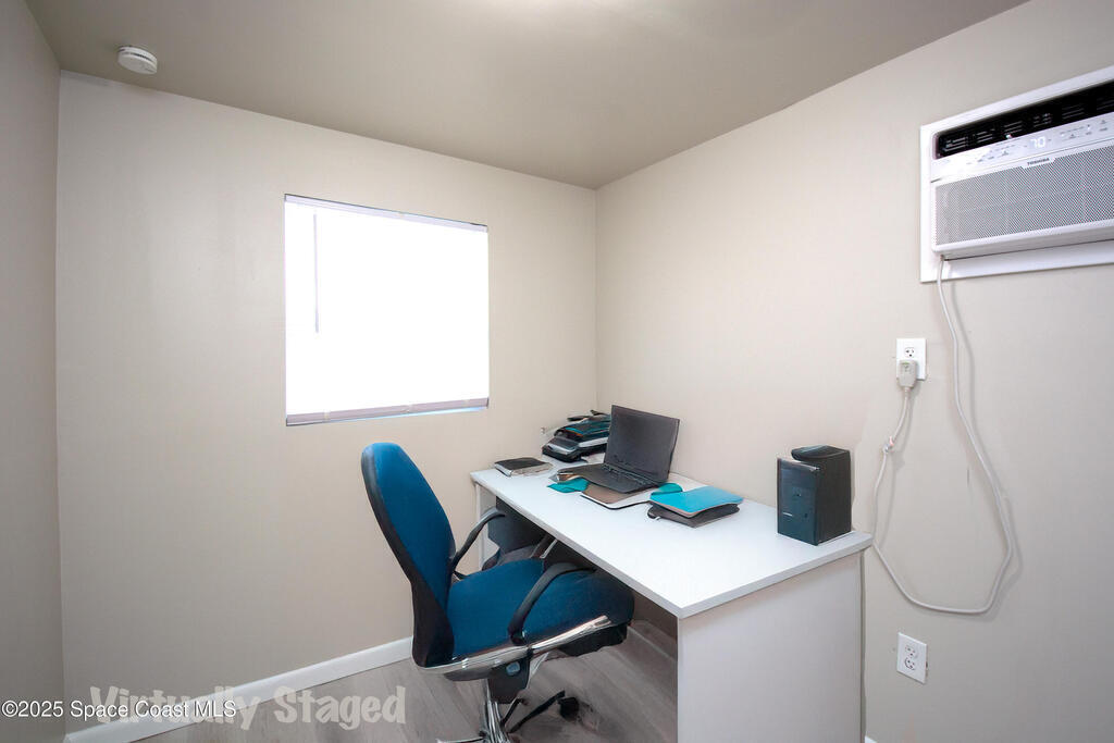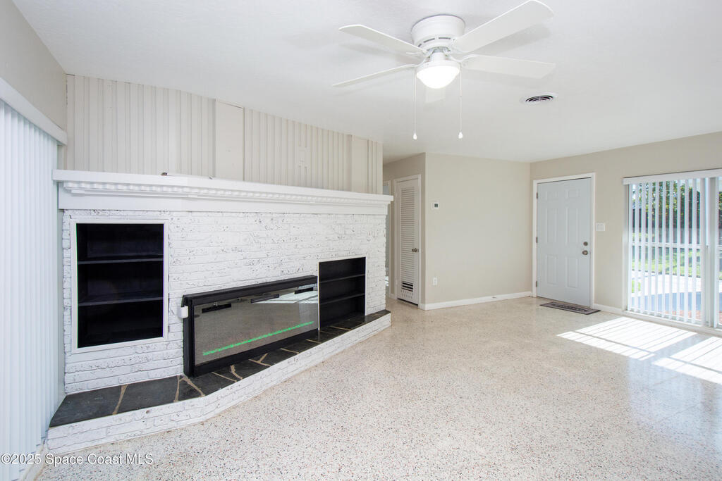 CLOSING COST ASSISTANCE & WARRANTY! Stylishly updated this gorgeous remodeled block home shines with new stainless steel kitchen appliances, modern white shaker cabinets, and quartz countertops. Bathrooms offer modern shaker vanities, adding a pop of color with seamless white marble countertops. Freshly painted inside and out, and polished terrazzo flooring throughout. ENERGY EFFICIENT with tinted windows, NEW: Blinds, Central A/C, Membrane Roof over the entire home, Attic/Ceiling Insulation. Both the Laundry/Utility Room and the 4th bedroom/office with closet, offers private entrances, NEW: split A/C units, wall and ceiling insulation, and are seamlessly included under the new roof. The outbuilding is your office/art studio also featuring a new A/C unit, insulated ceiling and walls, for year-round comfort. Additional upgrades include a new hot water tank, electric fireplace with color-changing lights, and a carport with a new drainage system.