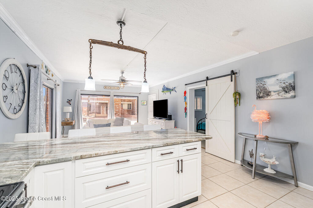 Enjoy OCEANFRONT living in this beautifully remodeled 2-bed, 2-bath Ground floor condo, just steps from the sand and a short walk to the Pier! Features include tile floors throughout, soft-close kitchen cabinets, granite counters, stainless steel appliances, and a breakfast bar. The primary suite offers a barn-door entry, walk-in closet, and updated bath with walk-in shower. The private 1-car garage includes laundry, a utility sink, and shower for rinsing off after the pool or beach. Updates include hurricane shutters, new A/C (2023), hot water heater (2021), new electrical panel, screen doors, ceiling fans, and balcony sliders with mirror-reflective film for privacy. Located in a solid two-story oceanfront community with healthy financials and all known assessments paid in full, this coastal gem blends quality, comfort, and an unbeatable location!