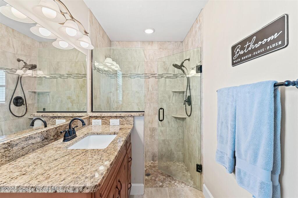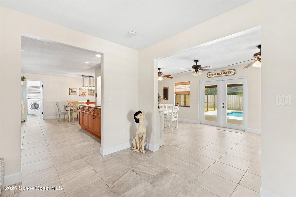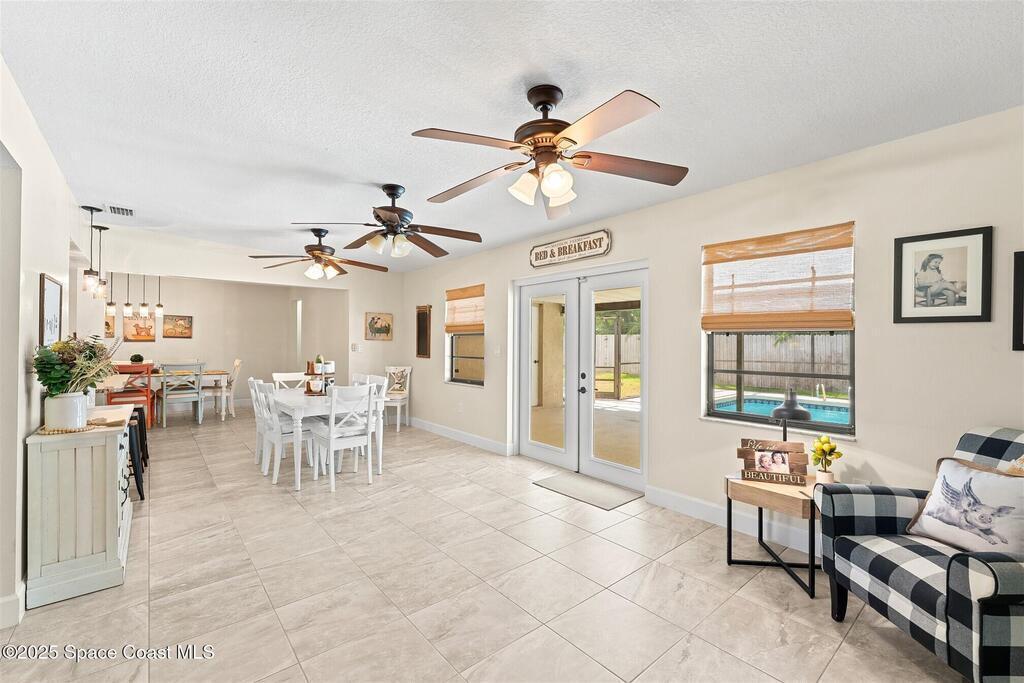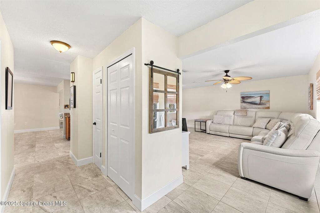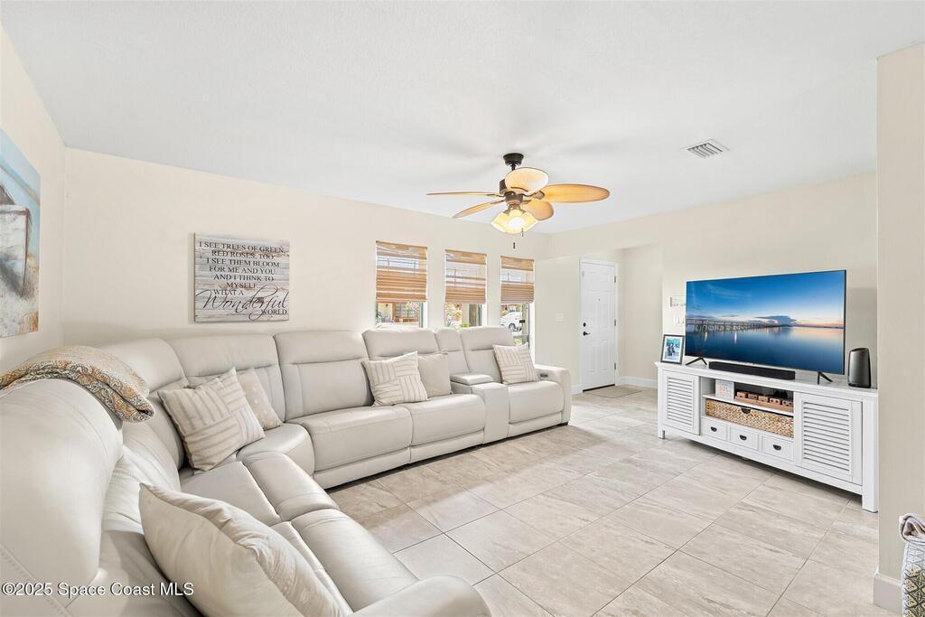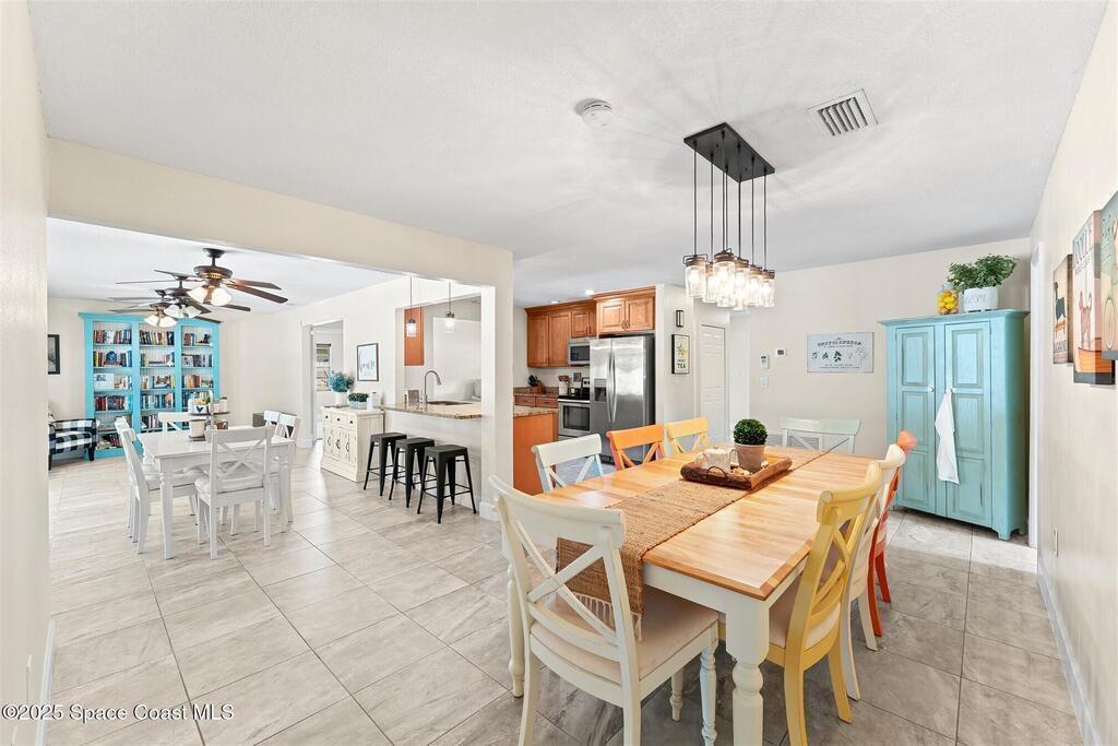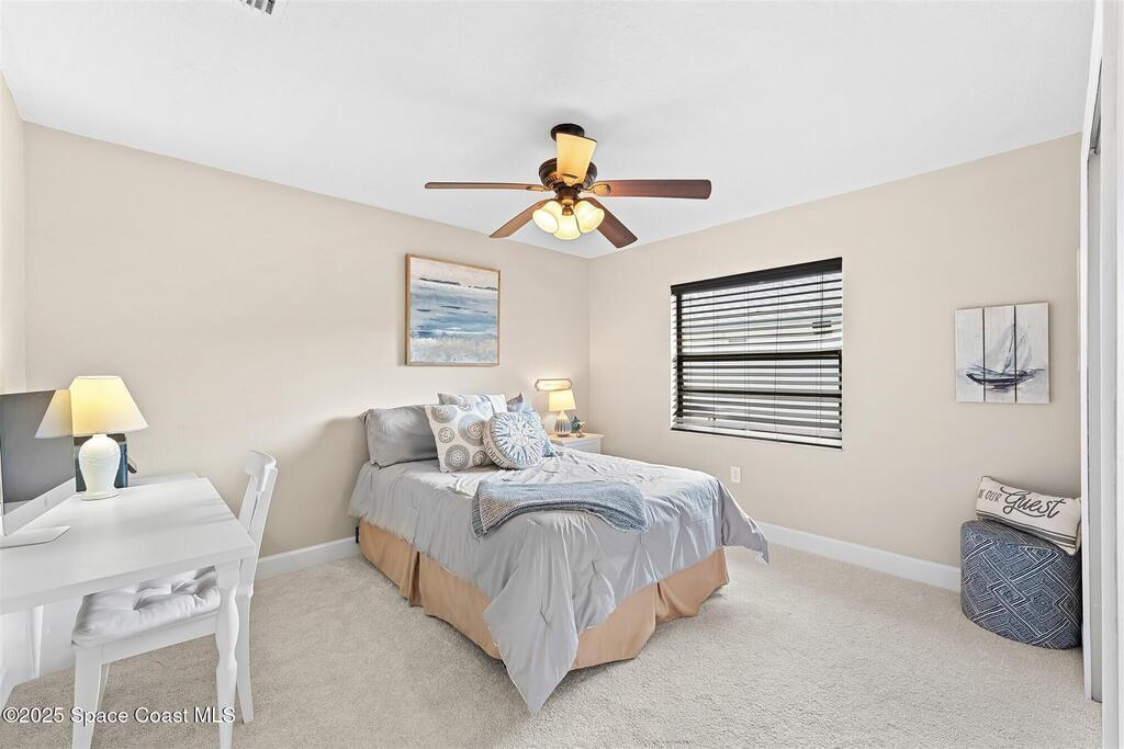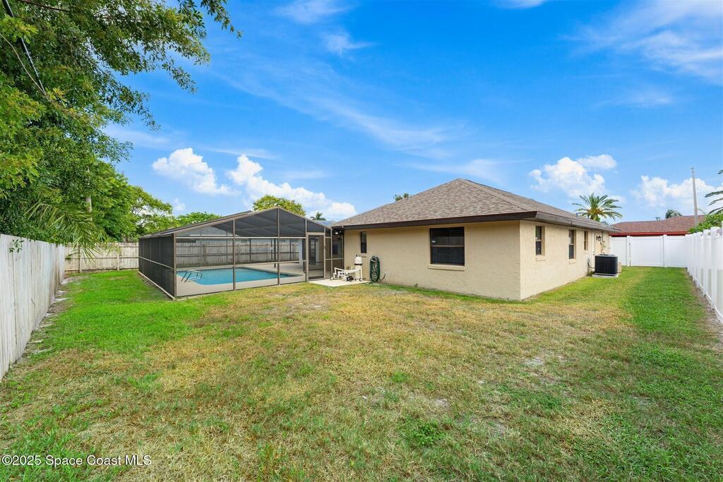 Welcome to 2275 Sykes Creek Drive in Merritt Island, a beautifully maintained home nestled in a quiet neighborhood just minutes from shopping, dining, and the beaches. This move-in-ready property offers peace of mind with major updates, including a 2022 roof, brand-new 2025 A/C, 2024 pool pump, updated electrical panel, and a resurfaced pool (2025). Inside, you'll find new carpet, freshly painted spaces, and a bright, open layout designed for comfort and easy living. Enjoy the versatile sunroom, perfect for relaxing or entertaining, overlooking your private, fenced backyard and sparkling pool. The primary bedroom suite features a walk-in closet and a separate powder vanity, adding convenience and charm. Whether you're seeking your first home, a family retreat, or a peaceful Florida escape, this Merritt Island gem offers the ideal blend of style, updates, and location.