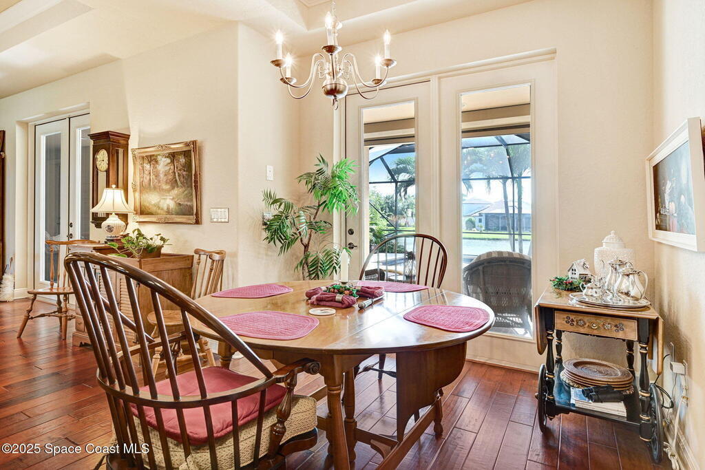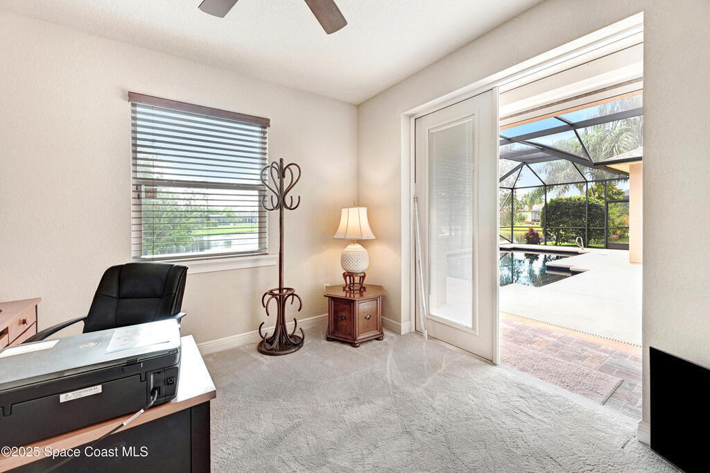 Impeccably cared for, this DiPrima custom-built home seamlessly combines refined LUXURY with everyday COMFORT and TRANQUIL Lake views. With superior craftsmanship, thoughtful design and high-end finishes, you will not be disappointed! The Gourmet Kitchen will inspire any chef with a dual fuel gas range, quartz countertops, two-tone custom cabinets, glass front doors & walk-in pantry. An open floor plan integrates the kitchen, family and dining areas for a harmonious flow of space. Architectural features include 10' tray ceilings, 8' interior doors, archways, transom windows & double French doors to the patio. The outdoor living area centers around a beautiful black-bottomed, solar-heated saltwater pool and cabana suite offering a private retreat with one bedroom & full bath. The large screened patio and well-appointed summer kitchen-with grill, mini refrigerator, & sink provides plenty of space to gather and enjoy. Whole house generator, hurricane protection, extended Garage &more
