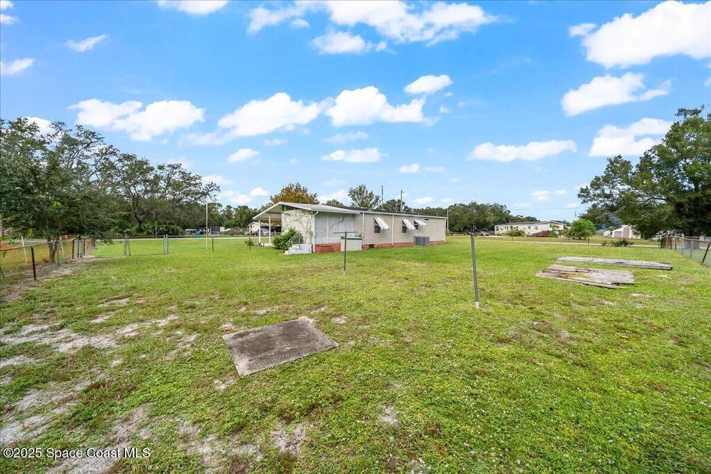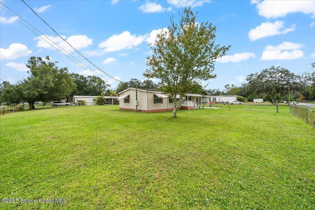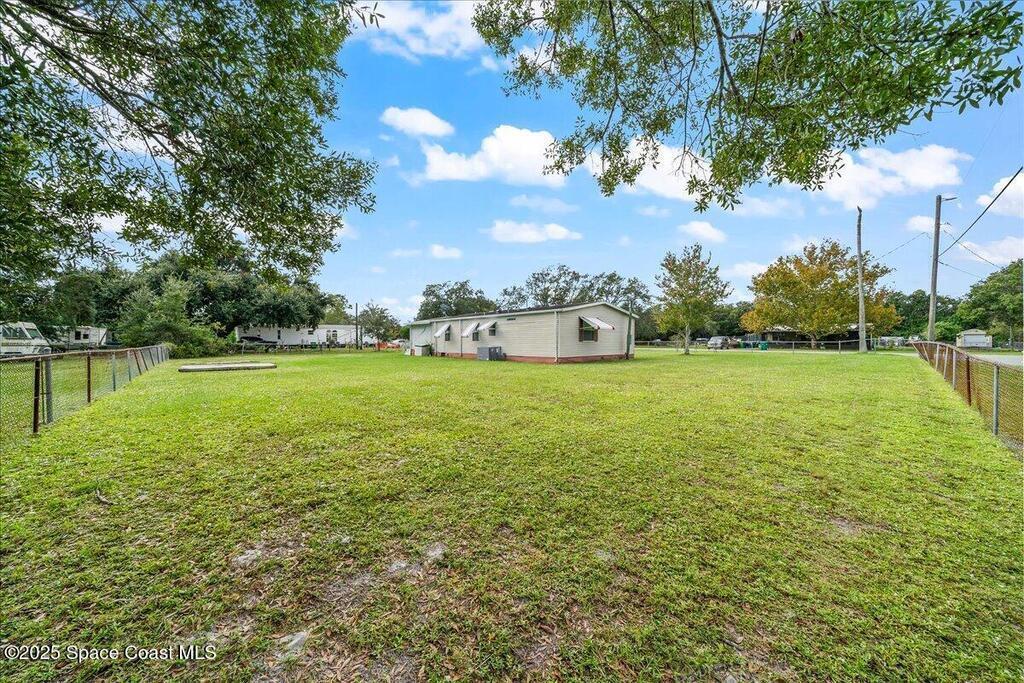 Spacious 3BR/2BA manufactured home on a rare .43-acre oversized lot! Enjoy NO HOA and no land lease; and plenty of room for RVs, boats, and trailers with easy access parking on this large corner lot. The fenced yard offers privacy and space to add a pool, workshop, or garden. Inside, an open floor plan features a bright living area, eat-in kitchen, and comfortable bedrooms. Furnished and move-in ready! Ideal for homeowners, investors, or snowbirds. Conveniently located just 20 minutes to Cocoa Beach, 25 minutes to Kennedy Space Center, and 40 minutes to Orlando International Airport (MCO). Experience Florida living with space, flexibility, and freedom--don't miss this property with endless potential and room for all your toys!