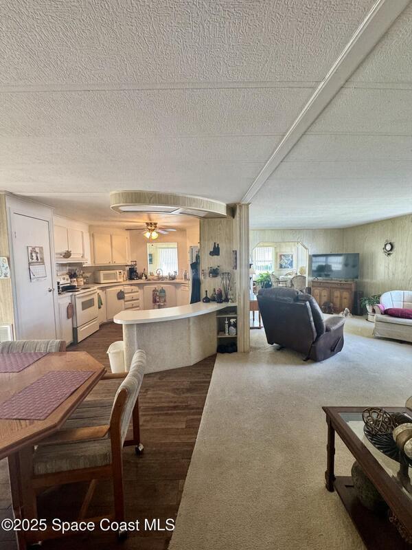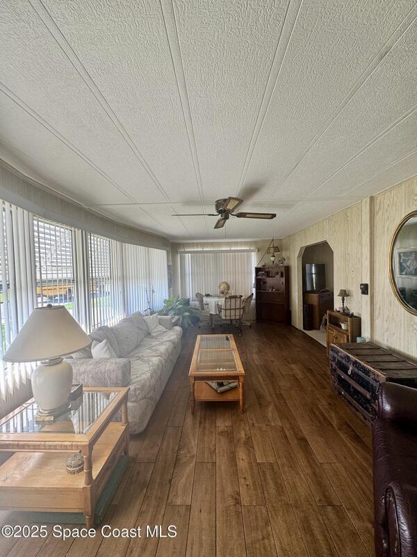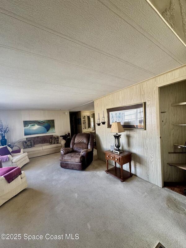 Welcome to the vibrant Barefoot Bay community! This 2-bedroom, 2-bath home sits across from the golf course, offering lovely views and endless potential. Featuring a bright, open layout with a spacious kitchen overlooking the dining area and a large front bonus room, this home is ready for your personal touch and creativity. With a bit of TLC and vision, you can transform this space into your ideal Florida retreat. Perfect for first-time buyers, seasonal vacationers, or anyone looking for a great investment opportunity. Enjoy Barefoot Bay's incredible amenities three sparkling pools, lounges, golf, bocce, horseshoes, tennis, fishing pier, private beach access, clubhouse, walking paths, clubs, mini golf, and stunning Florida sunsets by the lake. Motivated seller bring your best offer!