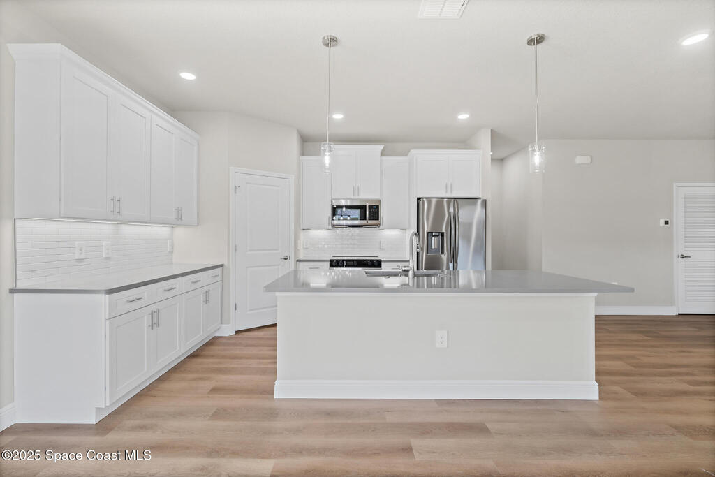Unbeatable Builder Incentives! Take advantage of $30,000 in Flex Cash that is applied toward a 30-year fixed rate as low as 5.49%, buyer closing costs, and prepaids when financing through the builder's preferred lender. This stunning new construction home exemplifies exceptional craftsmanship with soaring ceilings, a spacious open-concept great room, and a chef-inspired kitchen featuring all-wood shaker cabinets with crown molding, dovetail soft-close drawers and doors, quartz countertops, and a premium Samsung stainless-steel appliance package. Natural light fills the home through large windows and sliders leading to the covered lanai, complemented by luxury vinyl flooring throughout, tile in wet areas (no carpet!), and bathrooms with quartz-top vanities and fully tiled showers--no inserts. If you're searching for superior quality, thoughtful design, and unbeatable value, this is the home for you!