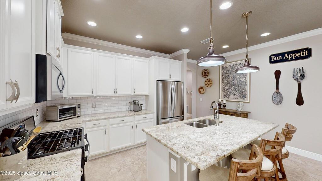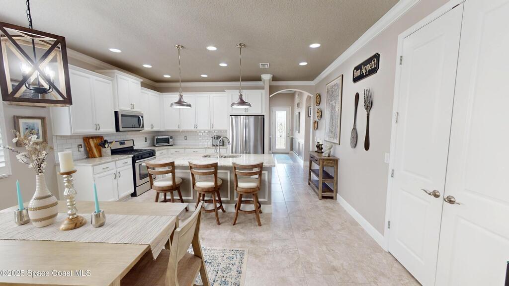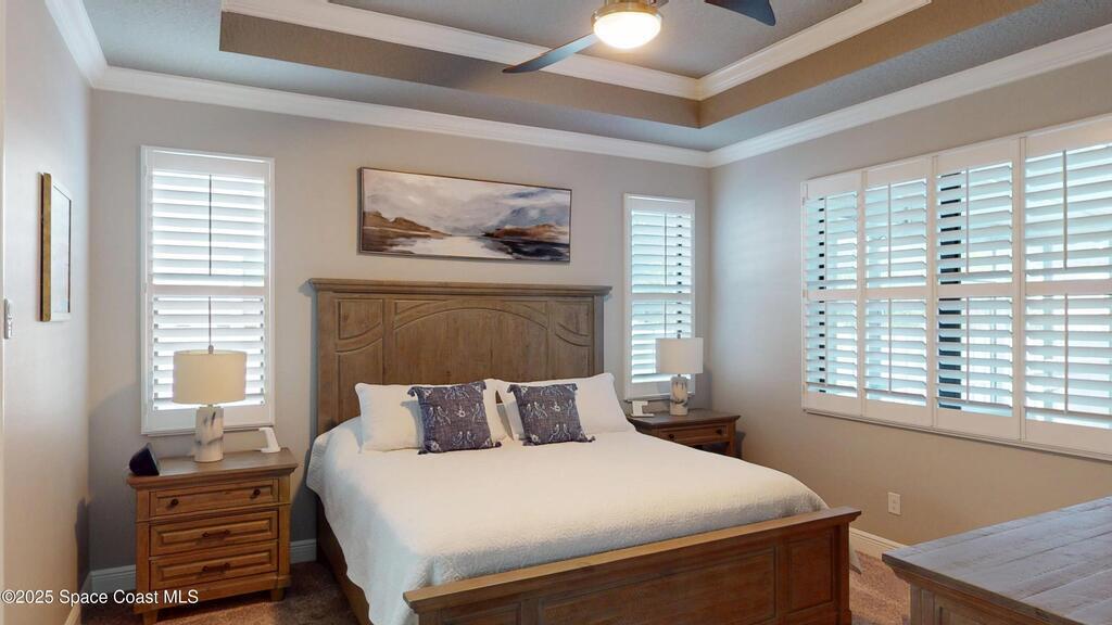 You will not find another heated pool home in Viera offering this level of upgrades, condition, and value at this price. Upgrades galore in this stunning Dogwood model, one of the most sought after and rarely available floorplans in Trasona. This home was designed for effortless living, with elevated finishes and thoughtful upgrades that set it apart. From the moment you step inside, you'll notice crown molding, plantation shutters, custom wainscoting, and a layout that flows beautifully for both everyday comfort and entertaining. The kitchen is absolutely gorgeous, featuring elegant finishes, abundant cabinetry, and a spacious design that opens seamlessly to the living and dining areas. Both bathrooms have been tastefully updated, including a double shower in the primary bathroom for a spa-like experience.The laundry room adds functional charm with added cabinetry and a built-in hall tree. Outdoors, your private backyard retreat awaits with a solar heated saltwater pool,