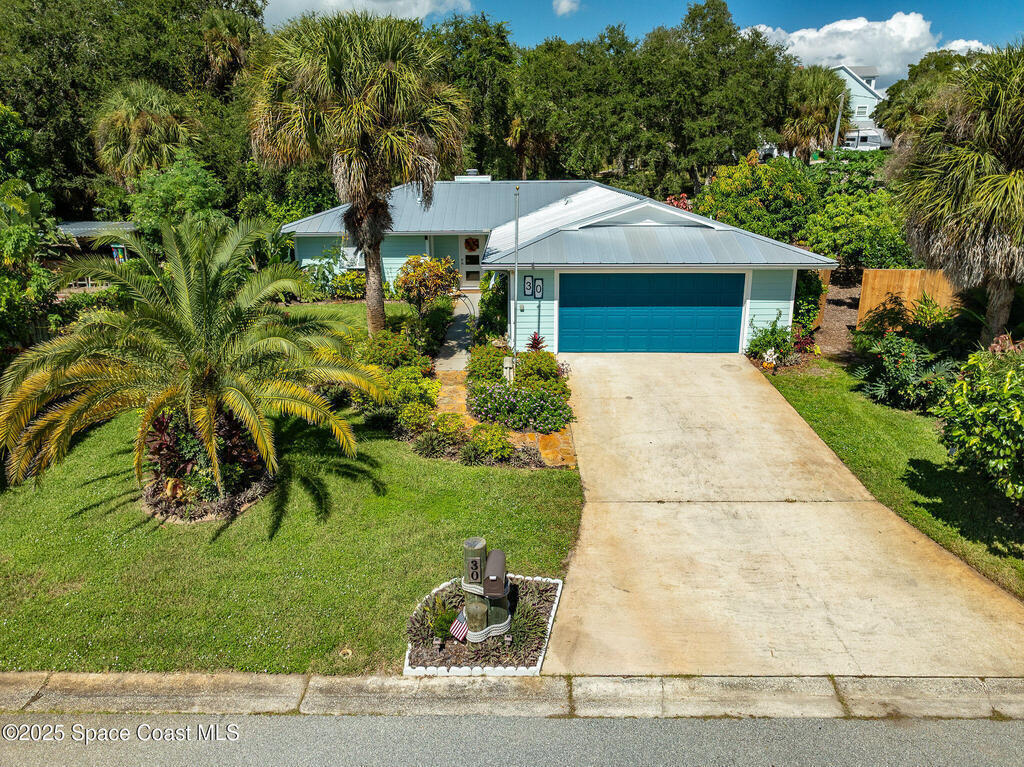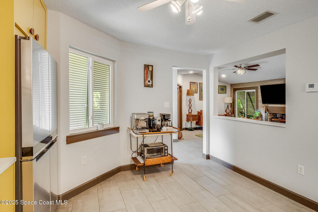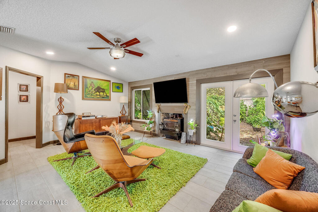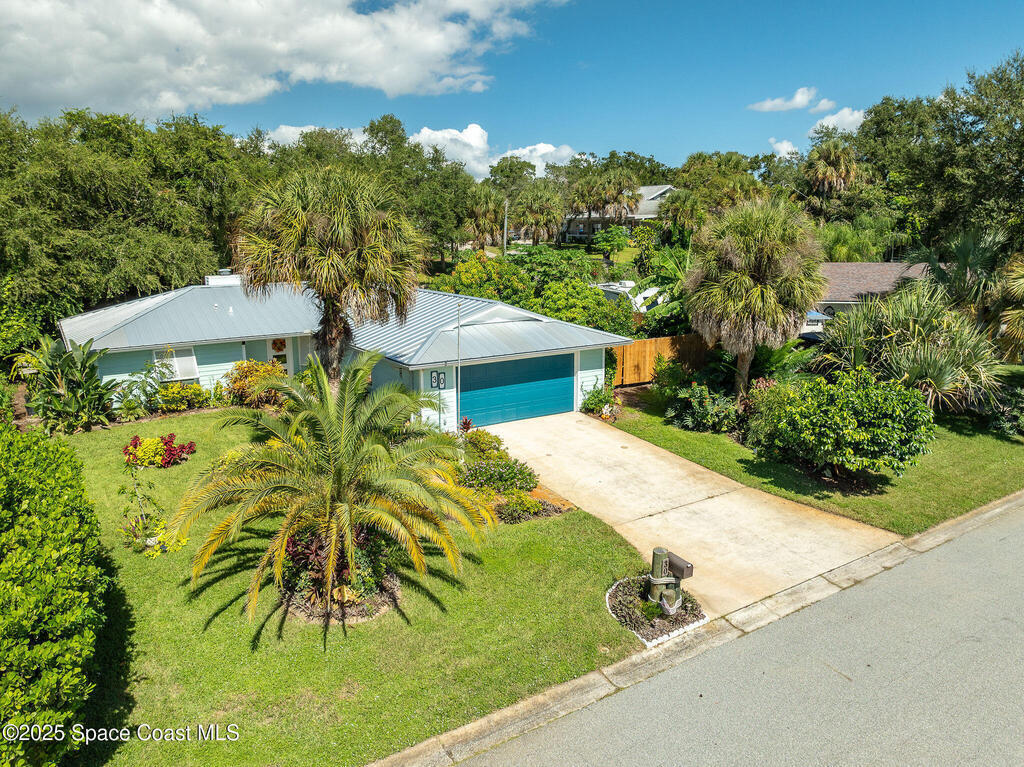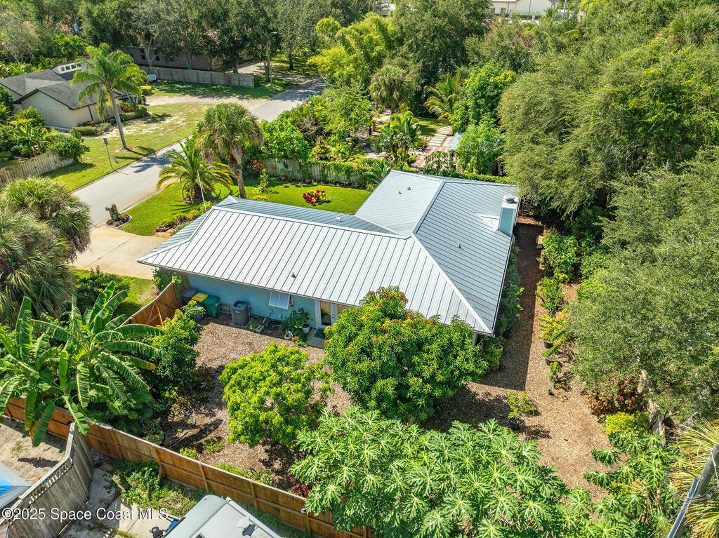 Discover this mid-century modern gem tucked away in a quiet Rockledge neighborhood, just steps from scenic Historic Rockledge Drive! Built in 1985, this home blends timeless style with fresh updates, including brand-new Hardie Board siding and a fully fenced yard filled with native Florida plants--papaya, mango, and avocado trees included. Inside, you'll find cool, modern flooring throughout and a newly remodeled kitchen featuring quartz countertops and vibrant cabinetry that set the tone for the home's unique vibe. The split floor plan offers both privacy and flow, with a cozy fireplace adding warmth and character. Enjoy the relaxed, creative feel of this special property in one of Rockledge's most sought-after areas. Standing Metal Seam Roof installed in 2019. No electrical lines either!