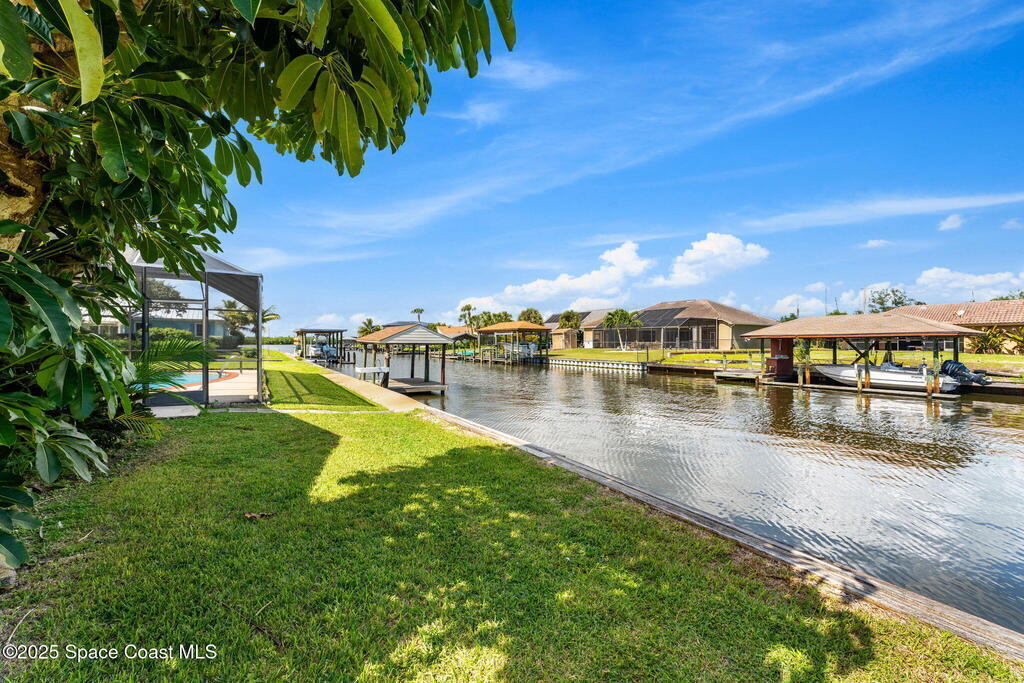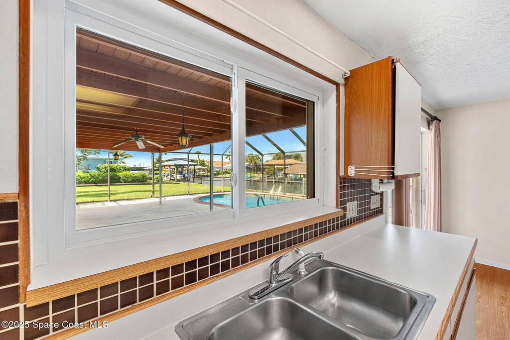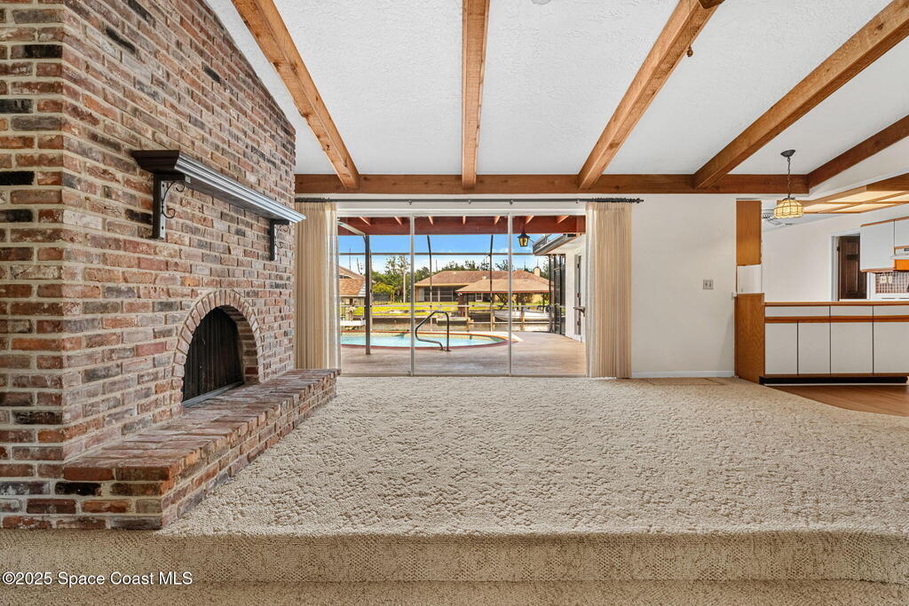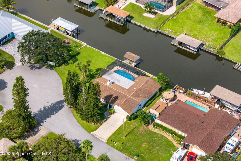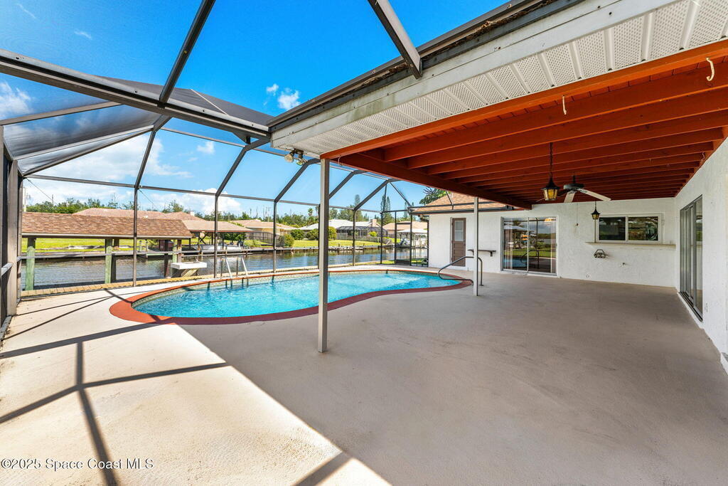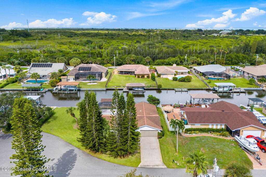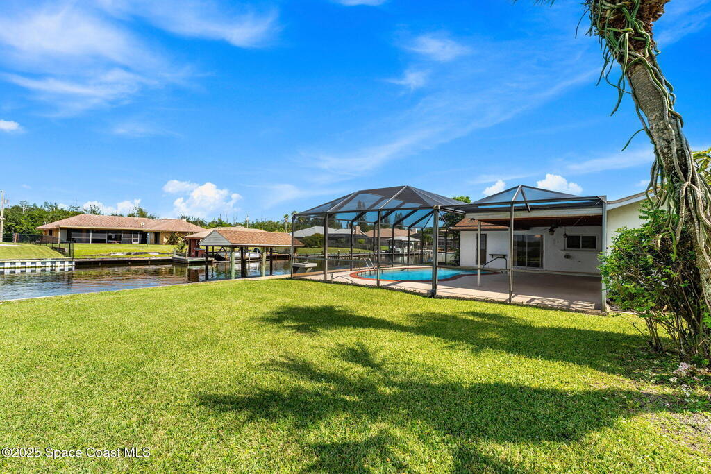 Boater's Paradise Awaits! Perfectly positioned on a .24 acre cul-de-sac lot, this CANAL FRONT POOL HOME offers direct access to the Indian River from your private covered boat dock--just minutes to Sebastian Inlet & offshore adventures! The split floor plan features a spacious living area w/ a wood-beam vaulted ceiling, brick wood-burning fireplace & a custom wood accent wall adding to the vintage charm. Triple sliding doors open to a screened pool & spacious covered lanai where you'll enjoy serene nature views. Recent updates- new HVAC & pool pump in 2025. All windows (except sliders) have been replaced & are impact rated! Tons of potential to make this your dream coastal retreat--bring your water toys & imagination! See Property Highligts in Documents. Sunnyland Beach is a friendly beach community w/ a voluntary HOA, & a deeded beach access, plus close proximity to Aquarina Golf Course & Nancy Higgs Park- indoor basketball, fitness classes, pickleball, disc golf, dog park & more!