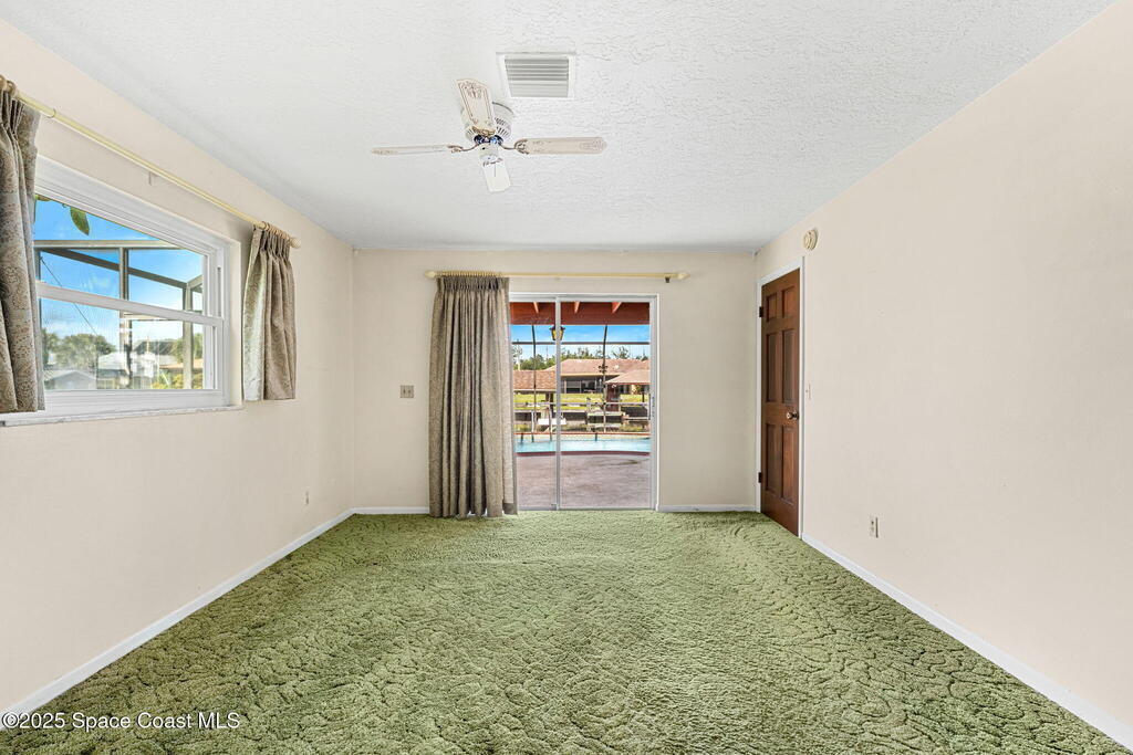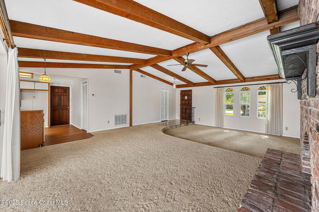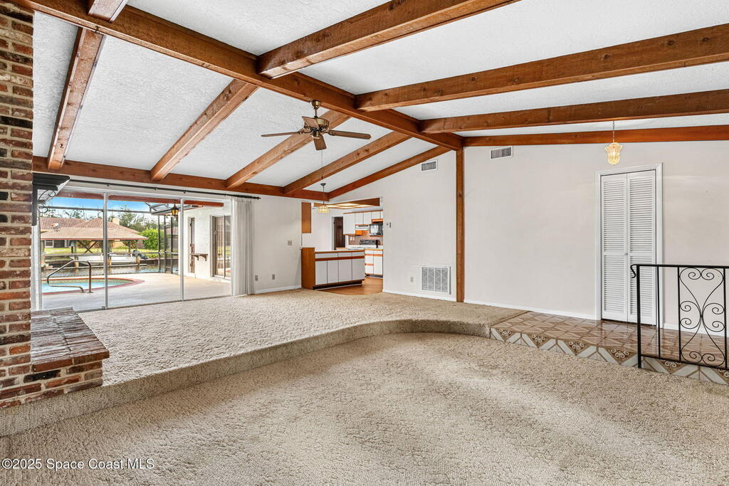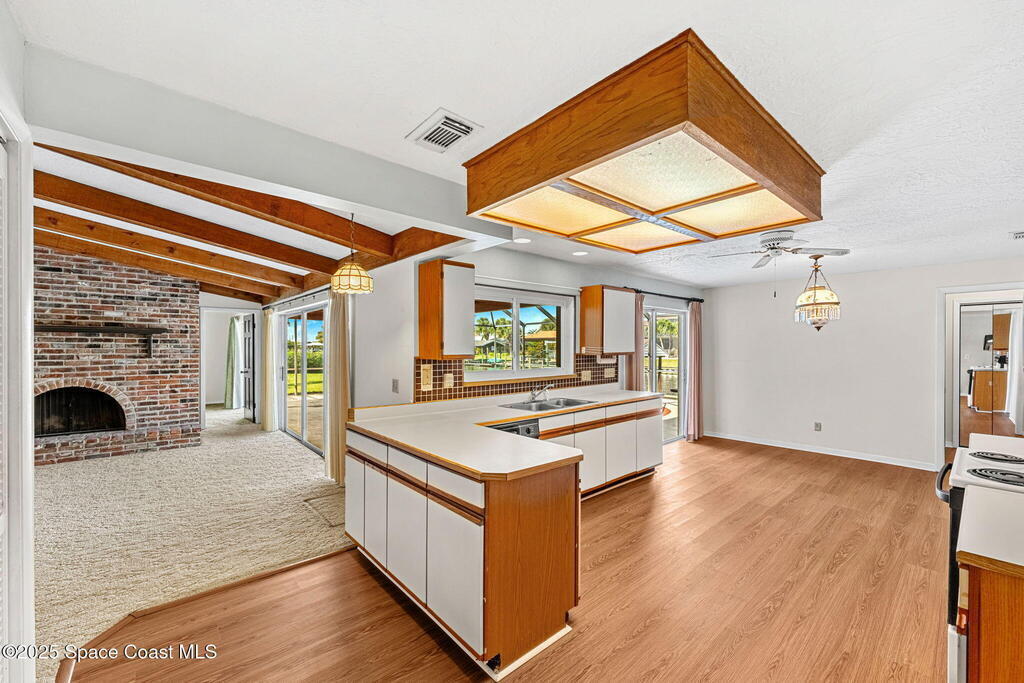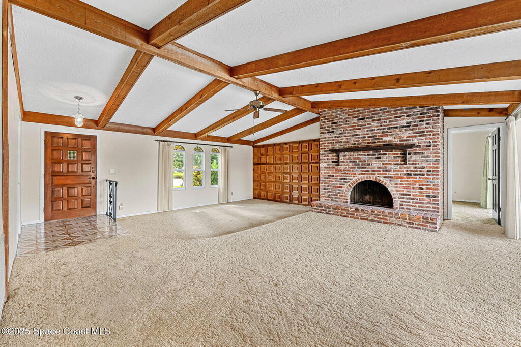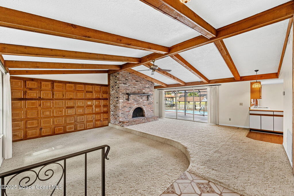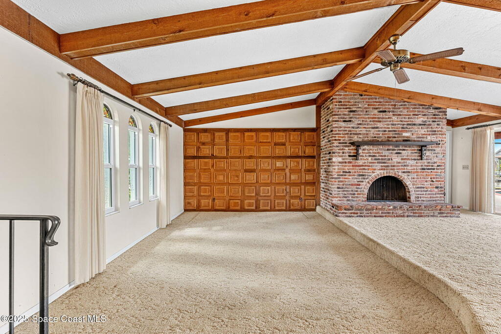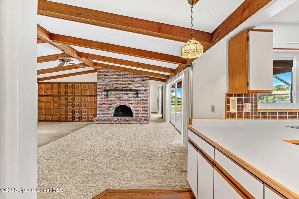 Boater's Paradise Awaits! Perfectly positioned on a .24 acre cul-de-sac lot, this CANAL FRONT POOL HOME offers direct access to the Indian River from your private covered boat dock--just minutes to Sebastian Inlet & offshore adventures! The split floor plan features a spacious living area w/ a wood-beam vaulted ceiling, brick wood-burning fireplace & a custom wood accent wall adding to the vintage charm. Triple sliding doors open to a screened pool & spacious covered lanai where you'll enjoy serene nature views. Recent updates- new HVAC & pool pump in 2025. All windows (except sliders) have been replaced & are impact rated! Tons of potential to make this your dream coastal retreat--bring your water toys & imagination! See Property Highligts in Documents. Sunnyland Beach is a friendly beach community w/ a voluntary HOA, & a deeded beach access, plus close proximity to Aquarina Golf Course & Nancy Higgs Park- indoor basketball, fitness classes, pickleball, disc golf, dog park & more!