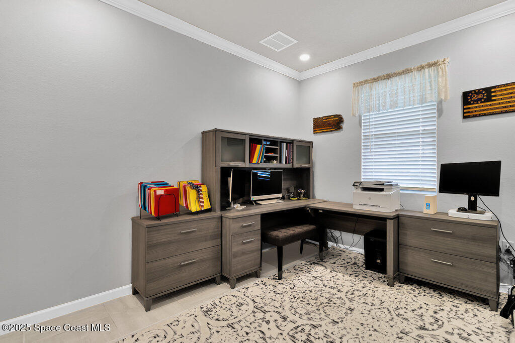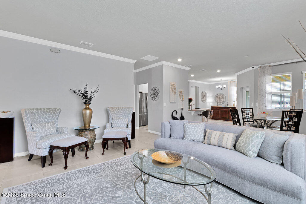 Welcome to Pointe West, one of Vero's most desirable golf communities. This beautifully maintained 4-bedroom, 2-bath home spans 2,076 sq ft of thoughtfully designed living space; perfect for anyone seeking the FL lifestyle. This bright, open-concept floor plan features high ceilings, tile floors thru-out, crown molding, lots of windows & abundant natural light. The modern kitchen offers SS appliances, Quartz countertops, 42-inch cabinets & custom pantry; a perfect blend of style & functionality. The primary suite is your private retreat, complete with a custom walk-in closet & en-suite bath featuring dual vanities, walk-in shower & a linen closet. Three addl bedr at the front of the home provide flexible space for guests, office, or growing family. Enjoy your front yard oasis, boasting peaceful green space and no thru traffic. A rear-entry 2-car gar w/ epoxy floors is a unique feature of this charming community. Relax on the covered, screened lanai, a perfect spot for morning coffee.