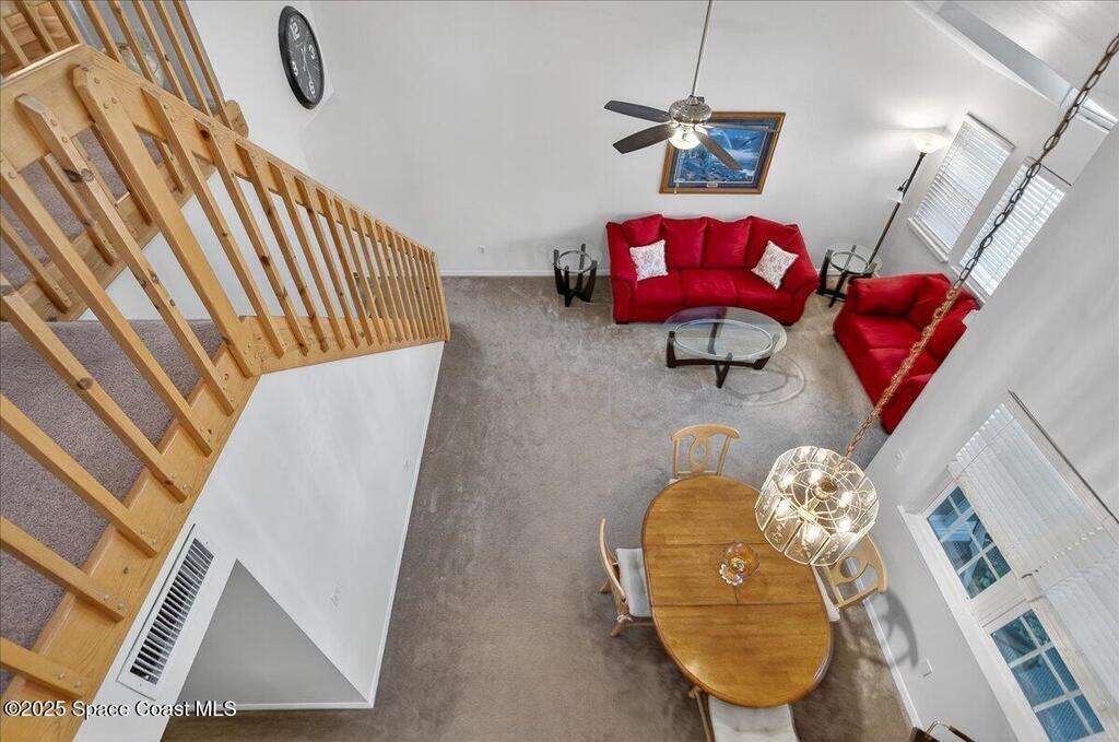 Soaring ceilings in this nicely maintained condo with loft / family room! 2BR/3BA, including full bath in loft! Spacious living / dining rooms with access to screened porch, kitchen. Handy kitchen with space for small table or credenza. Walk-in closets in both bedrooms. Full-sized laundry in unit. Impact windows! Roof - 2018. AC - 2020 . Building re-pipe - 2022. Furnishings available! Attractive community near shopping, restaurants & golf, yet only 8 miles to the beach! Olympic-sized heated pool, fitness center, tennis/pickleball & racquetball courts, library, more!