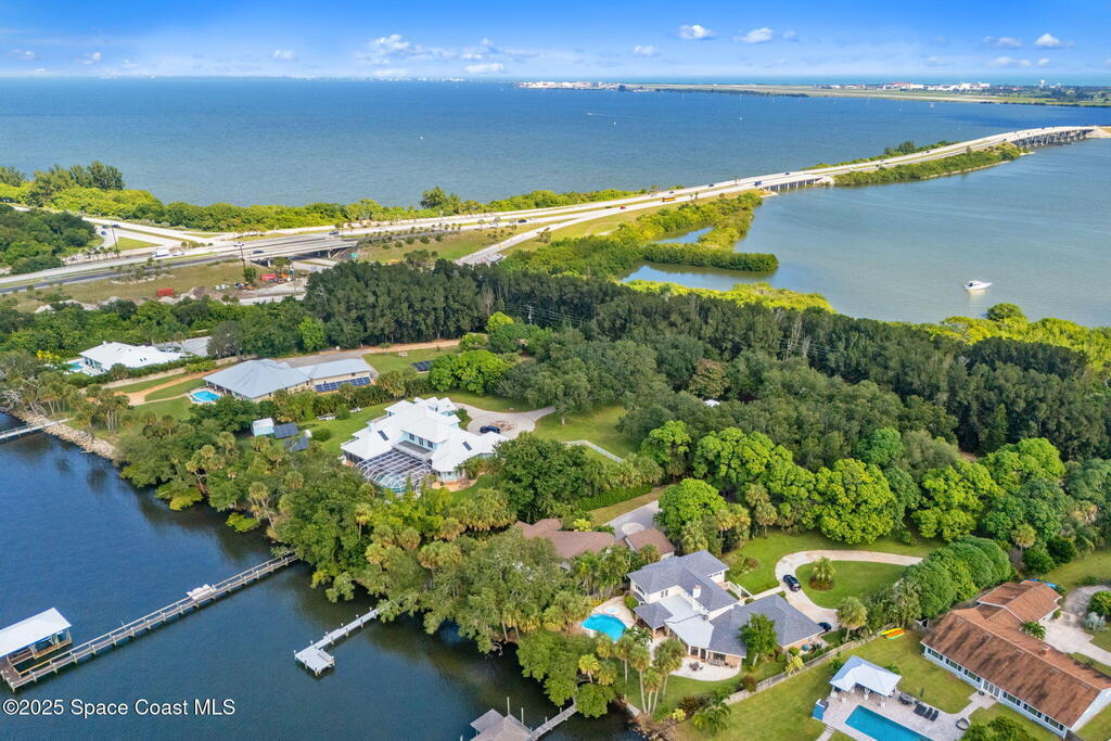 Spectacular direct Indian Riverfront home featuring 3 bedrooms plus an office, completely renovated in 2017 to combine modern design with subtle historic charm. The open layout emphasizes light and connection, with soaring glass, minimal walls, and seamless flow between indoor living spaces and lush outdoor gardens. Vaulted ceilings, LVP and tile flooring, and thoughtfully curated finishes create a warm, modern aesthetic that balances comfort with style. The first-floor primary bedroom offers privacy and river views, while the private dock with state-of-the-art Sure Step decking provides direct access to boating, kayaking, and fishing on the Indian River. Additional features include a newer paver driveway, professional landscaping, hurricane-rated windows, and dual air conditioners. Perfectly suited for those seeking Florida waterfront living, this home adapts effortlessly between contemporary and coastal-chic with just a change in furnishings.