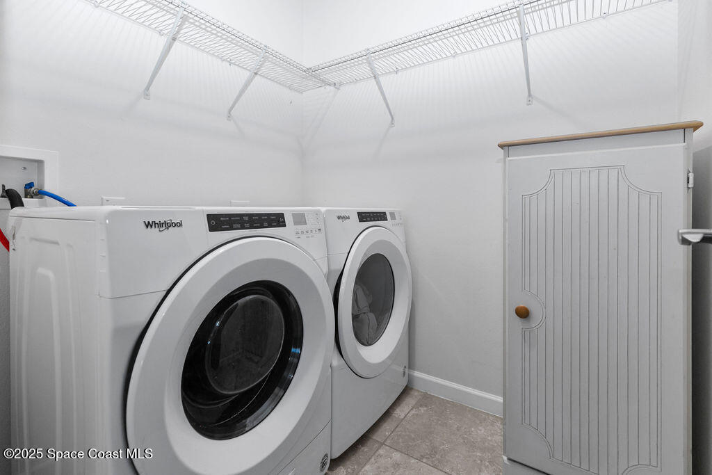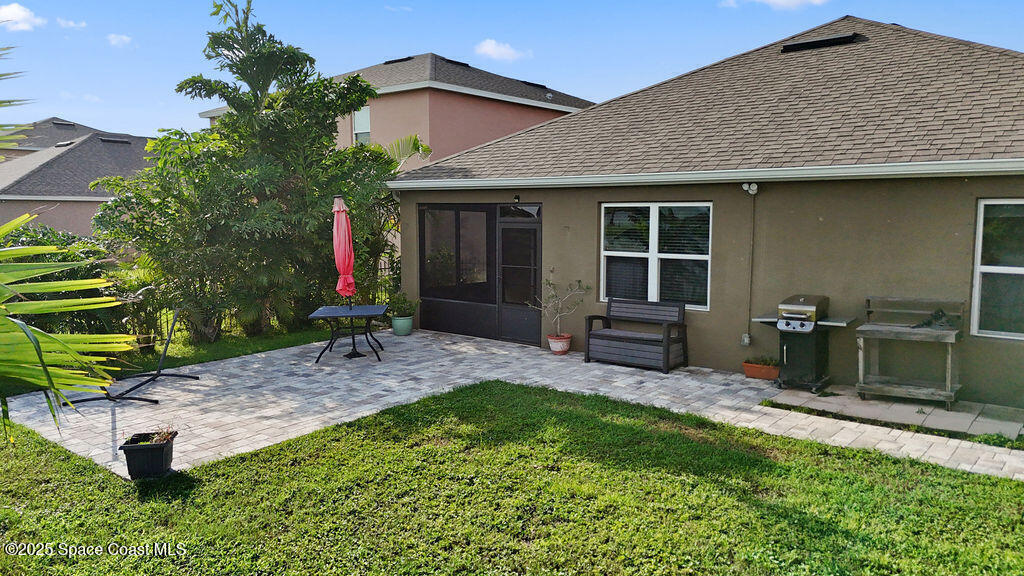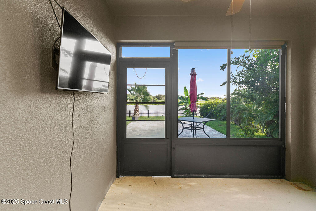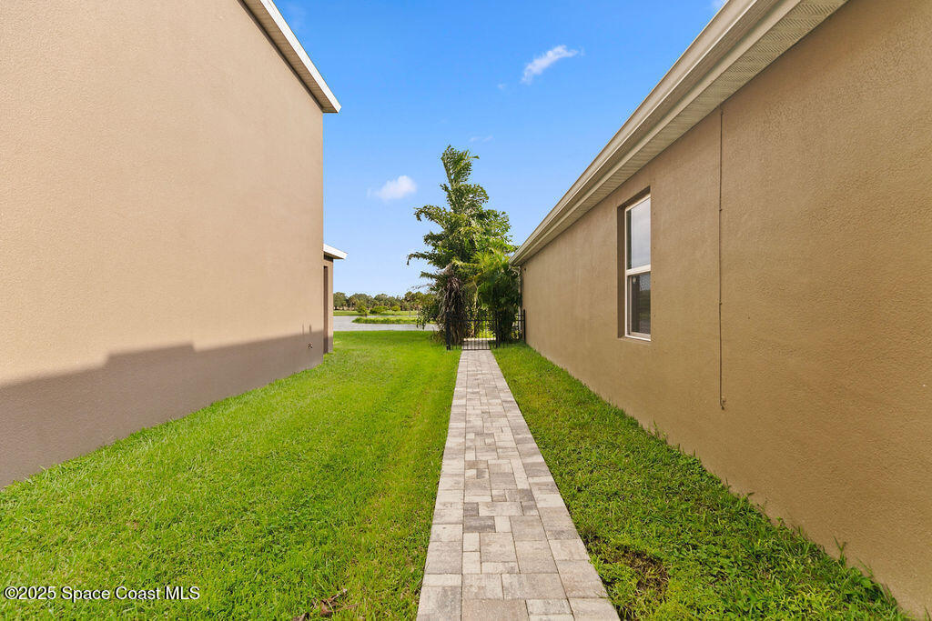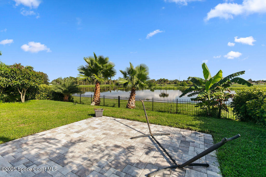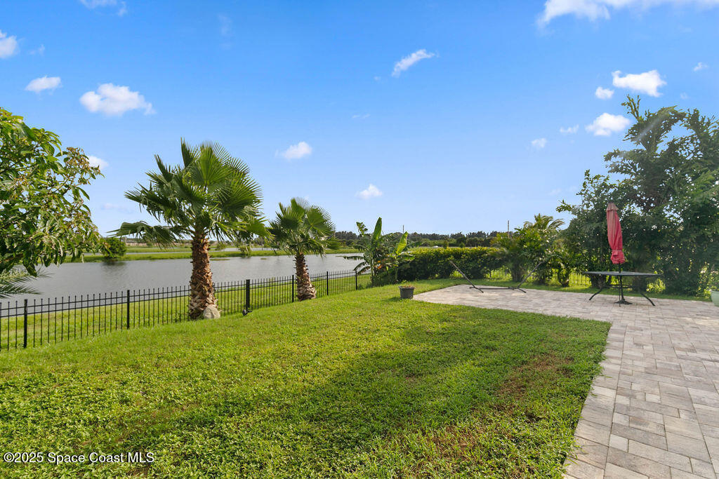 Welcome to this beautifully maintained 4-bedroom, 2-bath lakefront Smart Home offering comfort, style, and serene water views. This open-concept Cali model features ceramic tile flooring throughout, a spacious kitchen with a large island, 36'' cabinets with crown molding, and stainless-steel appliances. The living and dining area open to a Plexi glass screened-in lanai overlooking the lake. The primary suite includes a walk-in shower, double vanity, oversized closet, and extra linen storage. All the extra perks have been done for you! Storm shutters, light fixtures, window treatments, security system, ceiling fans and more. Enjoy the backyard, which has been fully fenced with wrought iron along with a paver patio. Just minutes away from Cocoa Village, Dr Anderson Park, Beaches, Orlando and Airport.