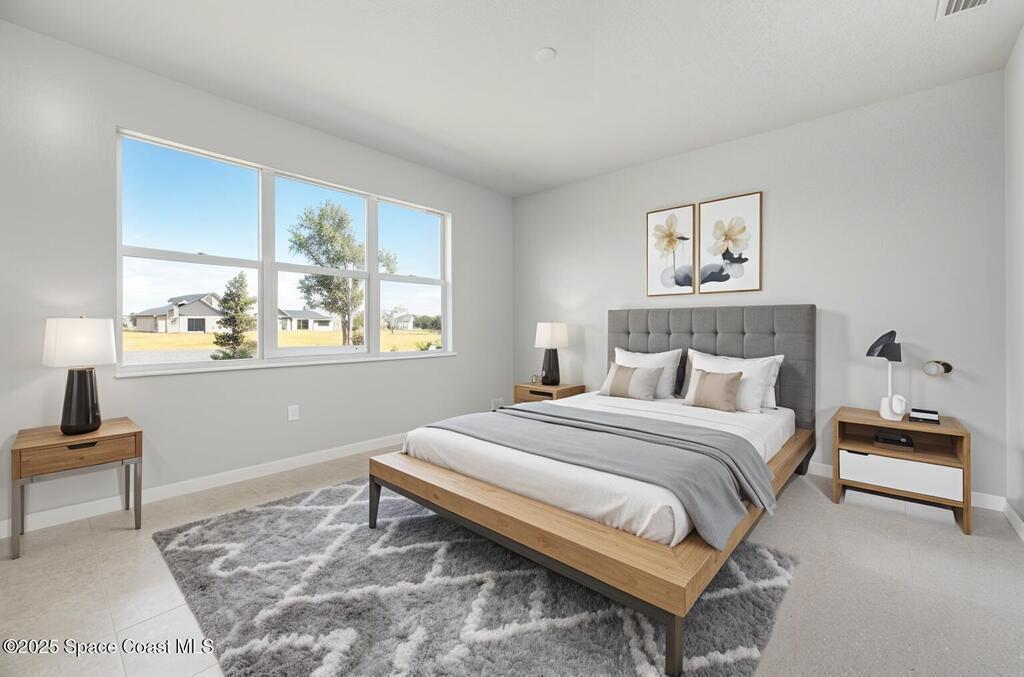 2025 Viera Built home in Crossmolina community with plenty space for a pool. This modern 3-bedroom, 3-bathroom residence includes a dedicated flex room/office, & tiles throughout. The bright, open floor plan flows seamlessly, highlighting a stunning kitchen complete w/quartz countertops, upgraded hardware, a large walk-in pantry, and a cafe area. The great room is illuminated by 6 recessed wafer LED fixtures. Retreat to the spacious main bedroom, which features an oversized walk-in closet. Built with peace of mind, the home boasts impact-resistant windows, full smart-home features, transferable 2-year builder plus 10-year structural warranty. As an owner in Crossmolina, you'll have access to a future community clubhouse and pool. You also have the option (not required!) to join the amenities at Addison Village. The home's prime location puts you just minutes from the new Publix & Costco, as well as The Avenue shops, dog parks, the Brevard Zoo, and a variety of dining & golfing options