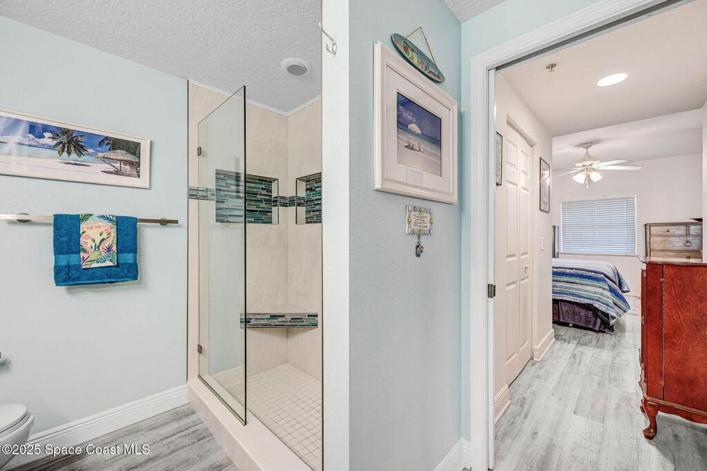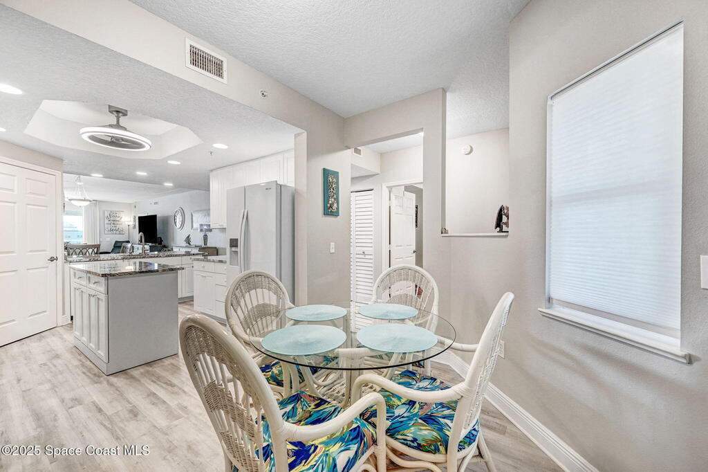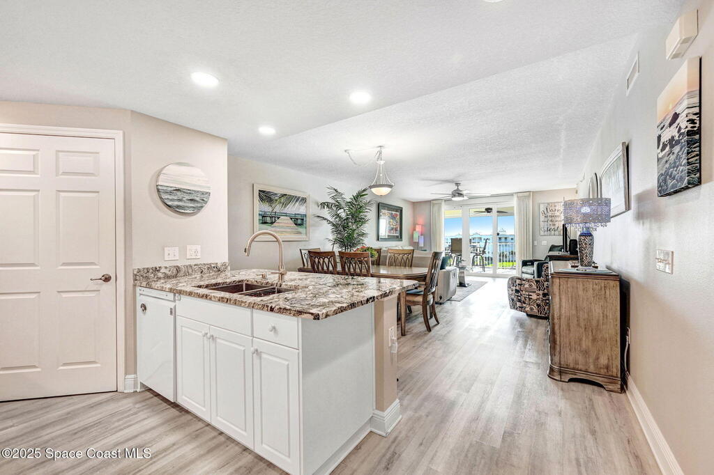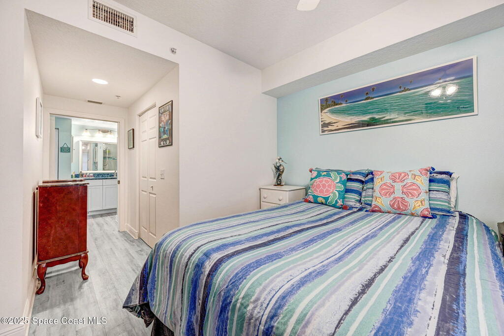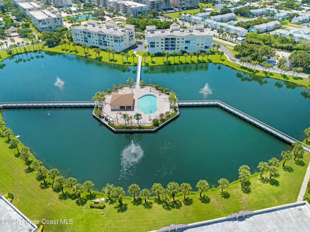 Wow, live on a lake AND have a private, gated walkway to a quiet beach. This completely upgraded top-floor home is in Solana Lake, an immensely popular gated condominium with an active lifestyle. Views of both the lake and ocean. 1700 square feet with an excellent use of space. Large walk-in closets in bedrooms. Separate garden tub and shower in primary bath. New granite countertops and matching roll-around island in kitchen. Newer higher-end appliances. New windows and sliding door with electric rolldown shutters. Oversized 350sf PRIVATE garage on first floor so you never get wet unloading your car. Sit on your 140sf deep balcony and enjoy a great view of cruise ships, rockets, and wildlife. Ample green space and parking. Island pool, spa, and cabana. Amenities include tennis/pickleball courts, clubhouse with well-equipped gym, sauna, etc. Walk/bike to Jetty Park. Centrally located with easy drives to airports, KSC, and shopping. Completely new roofs in Jan 2025.