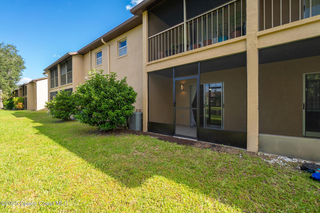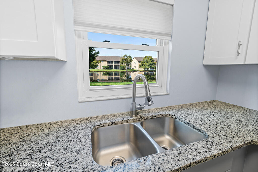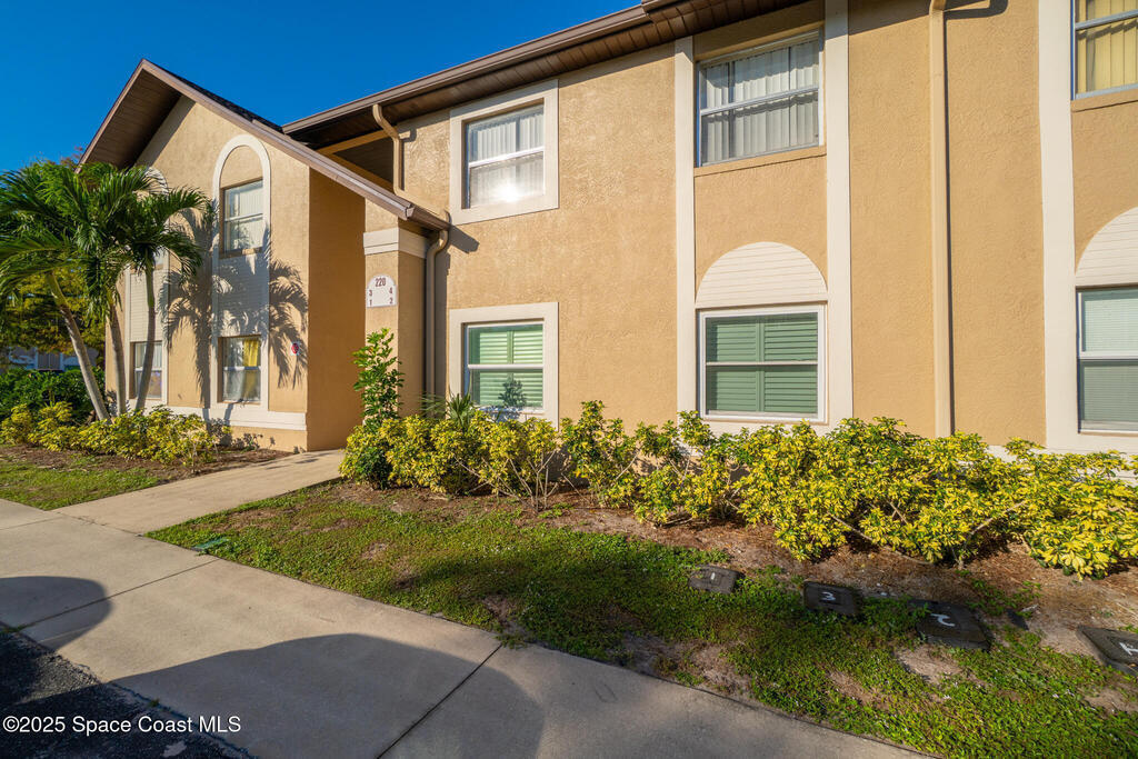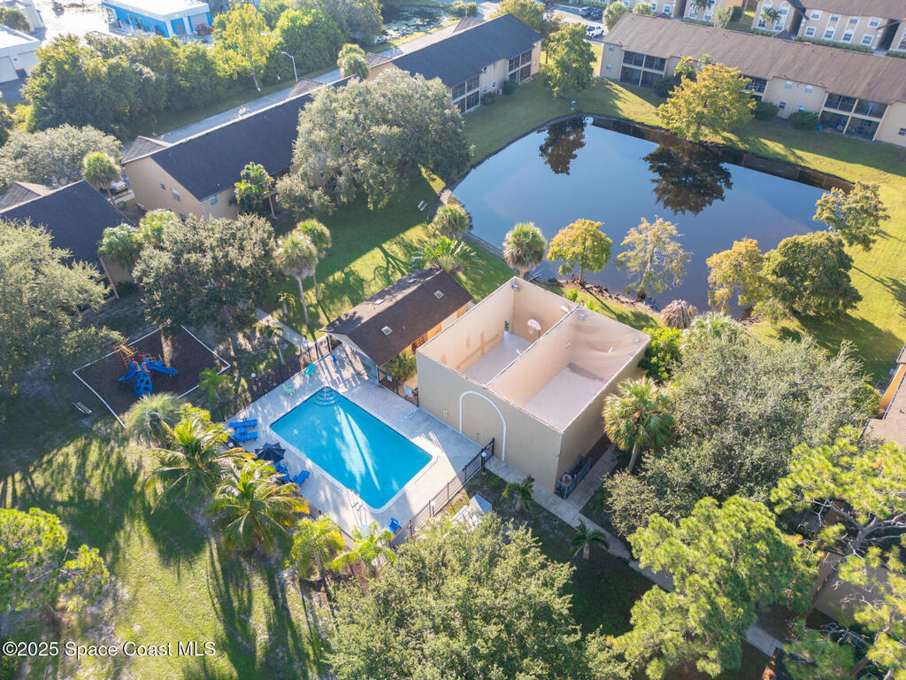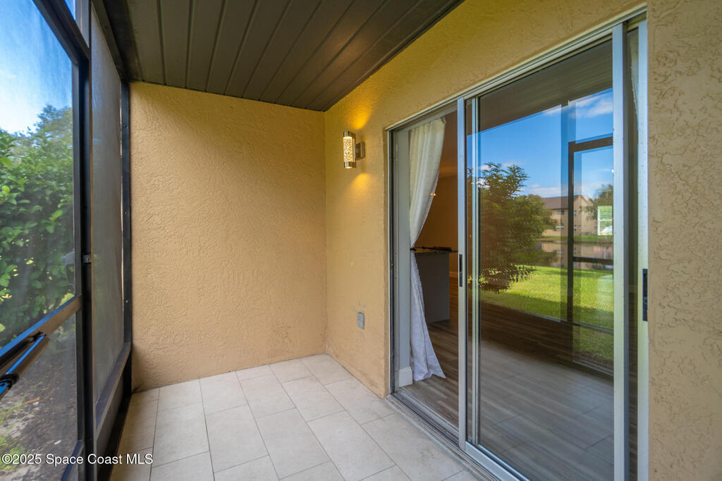 Discover serenity in this pristine 1st-floor Merritt Island condo, where comfort meets coastal ease. Step into open living spaces graced by modern luxury vinyl flooring. The kitchen offers pond views, sleek granite counters, white shaker soft-close cabinets, stainless steel appliances, LG washer/dryer and a granite breakfast bar with chic pendant lights. Unwind on the tiled screened lanai overlooking a peaceful pond and lush greenery. The primary suite includes a walk-in tiled shower with decorative inlay, refreshed vanity, plantation shutters and organized walk-in closet. Guest bath features a tiled tub/shower w/inlay flair and stylish finishes. Impact windows & 2024 hot water heater too! Enjoy low HOA fees of $265/month in a well-run, self-managed community 15 minutes to the beach and close to shops, Publix and dining. Listing includes 3D walkthrough & video tour. Schedule your private tour today and start Living the Florida Lifestyle!