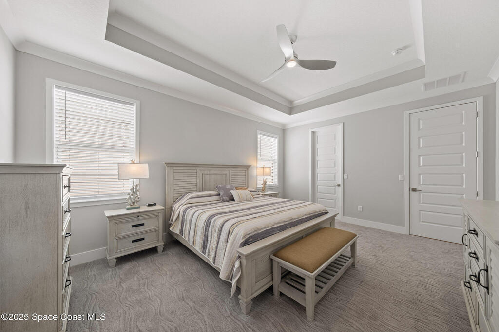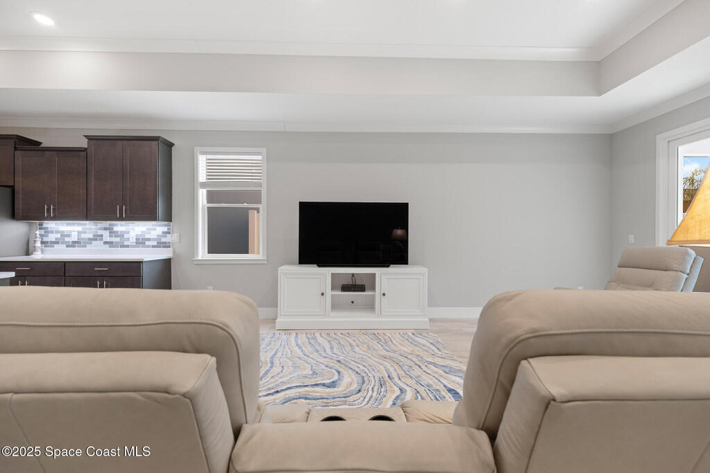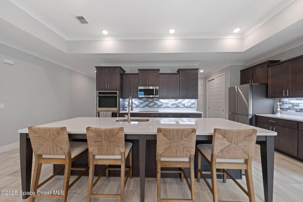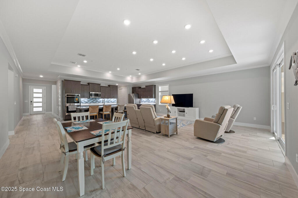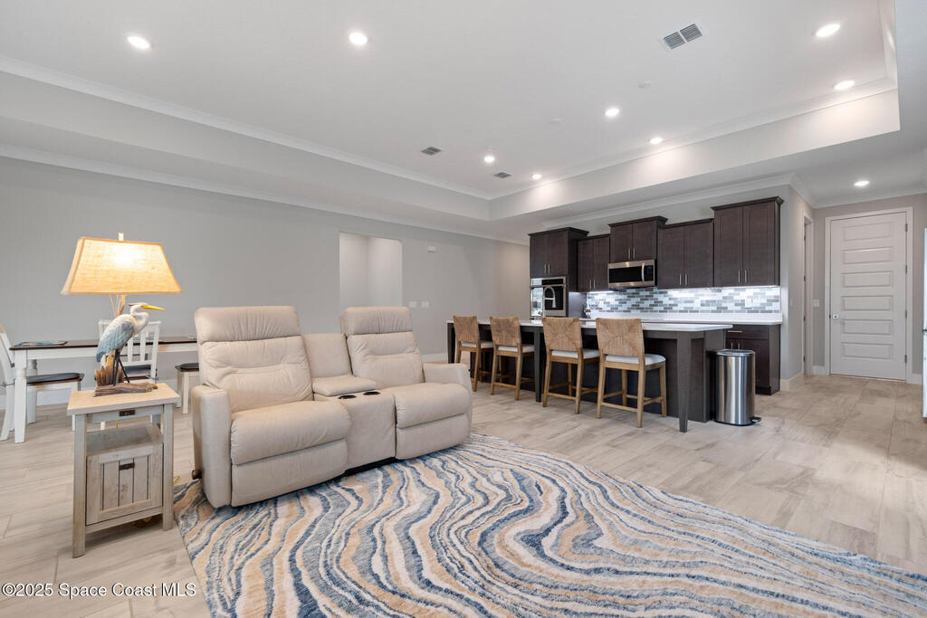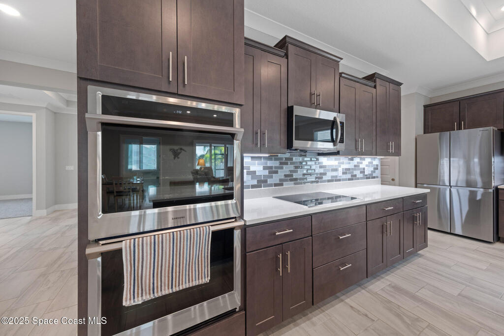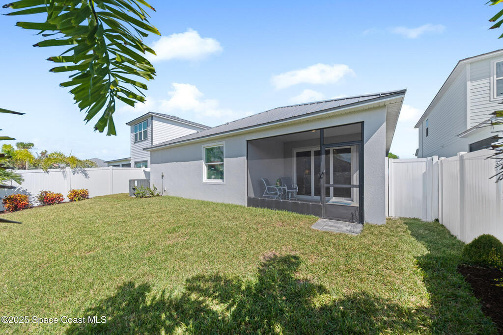 Just steps from the beach, this beautiful coastal contemporary home, built in 2023, offers the perfect beachside retreat. Featuring 3 bedrooms, 2 bathrooms & a dedicated home office, it's ideal for relaxing and working from home. The open living area is filled with natural light, vaulted ceilings & stylish tile floors. The chef's kitchen provides quartz countertops, stainless steel appliances, a built-in double oven, a butler's pantry & a large island with bar seating--perfect for gatherings. The primary suite provides a spa-like en suite and a spacious walk-in closet, while two additional bedrooms & the bright office offer flexible spaces for family and guests. Enjoy added convenience with a community pool, a 5' extended garage, impact windows & doors & modern finishes throughout. Located within walking distance to the beach, shopping, & dining & just a mile from Patrick Space Force Base, this home combines coastal charm with modern comfort for the ultimate relaxed lifestyle.