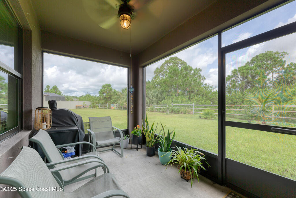 Welcome home to this FULLY FURNISHED, Move-in ready 2022-built, energy-efficient smart residence in The Preserves at Stonebriar Phase 2. Featuring 3 bedrooms, 2 baths, and impact windows throughout, this property blends modern design with sustainability--powered by a solar system that virtually eliminates electric costs. The open floor plan showcases a modern kitchen with granite counters, stainless-steel appliances, and Alexa-controlled lighting. Enjoy a spacious living area with Bose surround sound and Smart TVs, plus a screened patio perfect for Florida evenings. Set within a gated community, playgrounds, and clubhouse--close to shopping and dining.