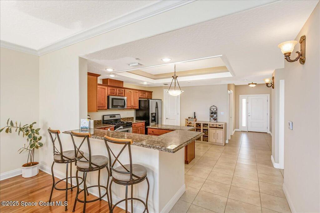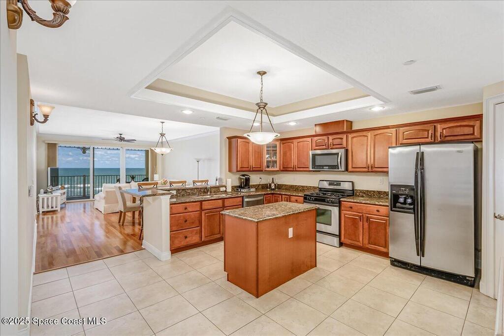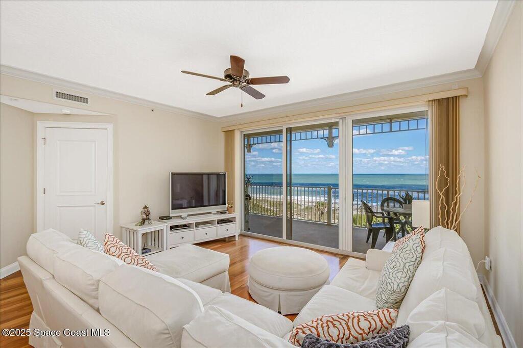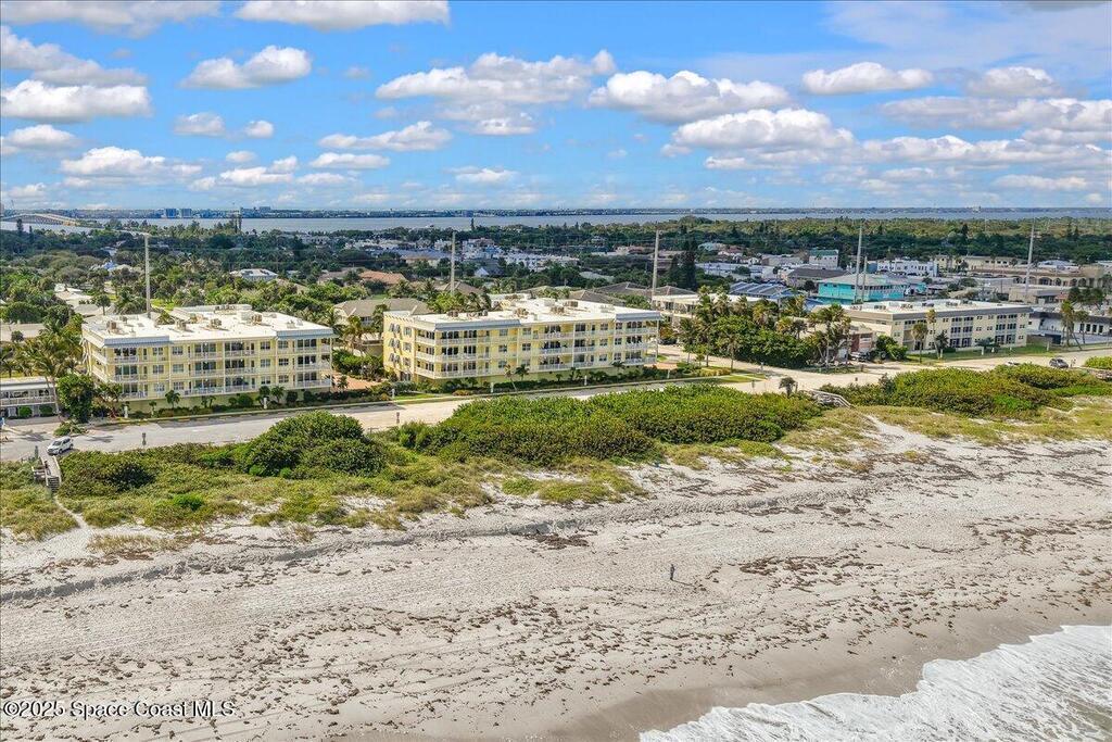 Penthouse condo with exceptional ocean views from both the main living area and the primary bedroom. This inviting 3-bedroom, 2-bath condo showcases breathtaking ocean views from the living area and the primary suite. The open-concept layout seamlessly connects the living and dining areas under soaring 9-foot ceilings with crown molding, creating an airy, light-filled retreat. Enjoy the protection and beauty of impact rated sliding glass doors and windows. Located in the heart of Indialantic, just a short stroll or bike ride to fine restaurants, boutique shopping, and local favorites. Downtown Melbourne is just over the causeway, offering dining, entertainment, and cultural experiences. Enjoy the convenience and security of under-building garage parking, two spaces included, private climate controlled storage unit, plus, heated pool, relaxing spa, clubhouse and fitness room with newly updated equipment.