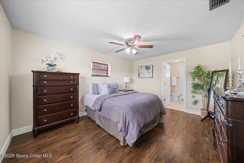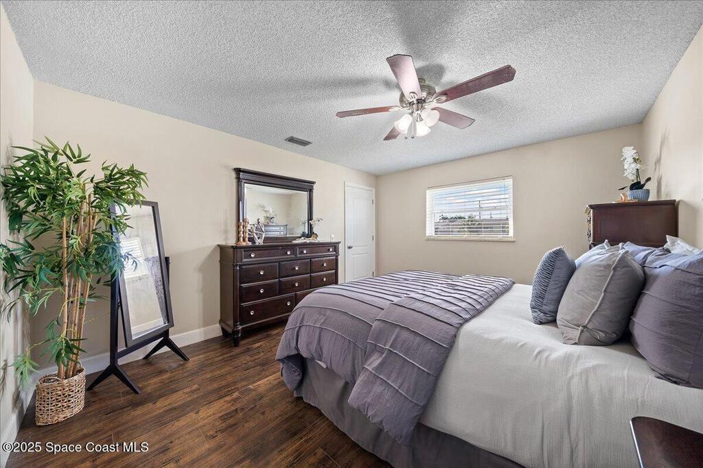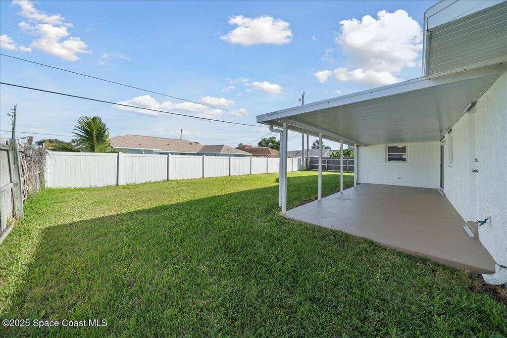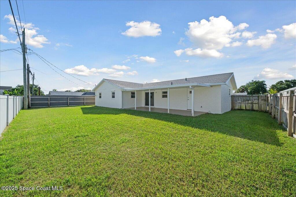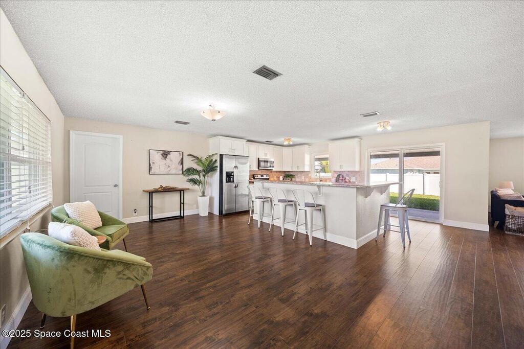 Move-in ready home in the heart of Satellite Beach's President Streets. This 3-bedroom, 2-bath residence features an open layout with warm wood-look flooring and a spacious kitchen complete with granite countertops, wraparound bar seating, and shaker-style cabinetry. The split floor plan provides privacy, and the large primary suite offers a walk-in shower, sizeable closet, and a private exterior door, ideal for a future pool bath. Recent updates include new exterior paint, upgraded electrical panel, hurricane shutters, and newer windows for added peace of mind. The arched entry and double front doors enhance the home's coastal charm, while the covered lanai and fenced backyard create the perfect setting for entertaining or adding a pool. An irrigation system and full two-car garage complete this inviting property. Located within walking distance to Spessard Holland Elementary, Delaura Middle, and Satellite High, this home truly embodies the best of beachside living.