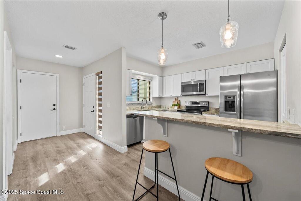 Just steps from the sand, this beautifully remodeled CBS townhome in the quiet Winds of Paradise community is all about relaxed beachside living. Enjoy a maintenance-free lifestyle in this bright two-story home right across the street from the ocean.Everything has been updated -- from the luxury vinyl plank floors to the porcelain tile, granite countertops, and shaker cabinets with soft-close drawers. There's a newer hot water heater, brand-new carpet upstairs, and a 2019 AC unit inside and out.Bring your pets -- there are no restrictions here! The community offers a sparkling pool, clubhouse, and easy beach access just across the way. Tile roofs were replaced in January 2019, so all the big stuff is done.Close to great restaurants, shopping, and everything you love about beachside living -- this is the perfect coastal retreat. Come see it before it's gone!