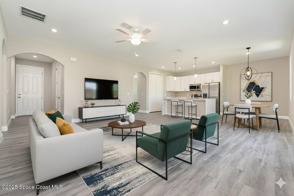 FLEX CASH & NO CLOSING COST LOANS AVAILABLE. One or more photo(s) has been virtually staged--New Construction. This Luxurious 4-bedroom, 2.5 Bath Property is exquisitely built with all of the upgrades nestled in the heart of Palm Bay. Inside you will find a wonderfully open floor plan perfect for gatherings and entertaining. The capacious Chef's Kitchen is stylishly equipped with a prep island, solid wood cabinets, stainless steel appliances and ample storage. The contemporary living space is bursting with natural light and a flowing layout that is inviting and relaxing. Luxuriate in the vast Primary Suite that offers a collection of modern conveniences. This beautiful house is full of INCLUDED upgrades: solid wood soft close cabinets in the kitchen and in the bathrooms, luxury vinyl plank flooring (no carpet), and floor-to-ceiling tiles in the showers, bathroom niches, granite countertops in the kitchen and baths, 9'4'' ceilings, 8-foot doors and an electric garage with controls.