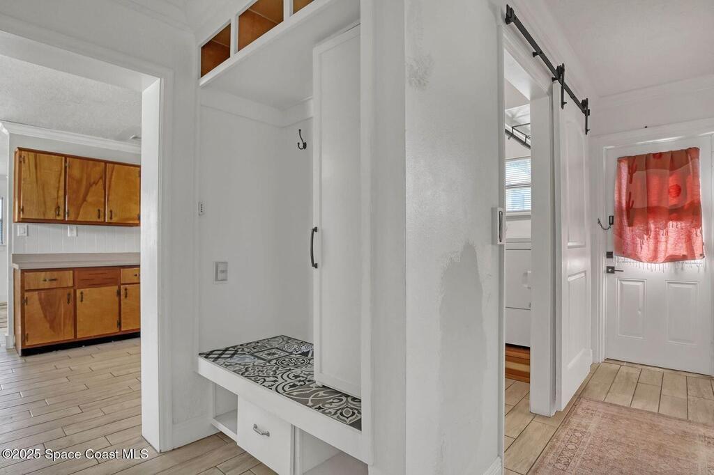 Adorable, concrete block home in the heart of Merritt Island! This charming 3 bedroom/ 2 bath/ 1 car garage home is full of character with some really cool projects started ready for your finishing touch! Amazing opportunity to live on Merritt Island for 1st time home buyers, a vacation home or an investment purchase! This budget pleaser has an outside storage shed, inside laundry & a spacious eat-in kitchen. The living/dining/kitchen are open and bright and the primary bedroom has a large walkin closet! Peace of mind with new electrical panel & surge protector, 2018 roof & gutters, 2017 hvac & new air ducts, double pane windows, hurricane shutters, hurricane rated garage door, rain soft water system, sprinkler system, and located on a dead-end quiet street! Only minutes to boating ramps, fishing, great schools and many restaurants & shopping malls. Cocoa beach is only a 5 min. drive, 10 min. to Port Canaveral, 25 min. to KSC and less than an hour to Orlando Airport and Theme Parks