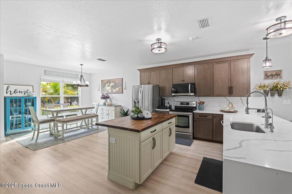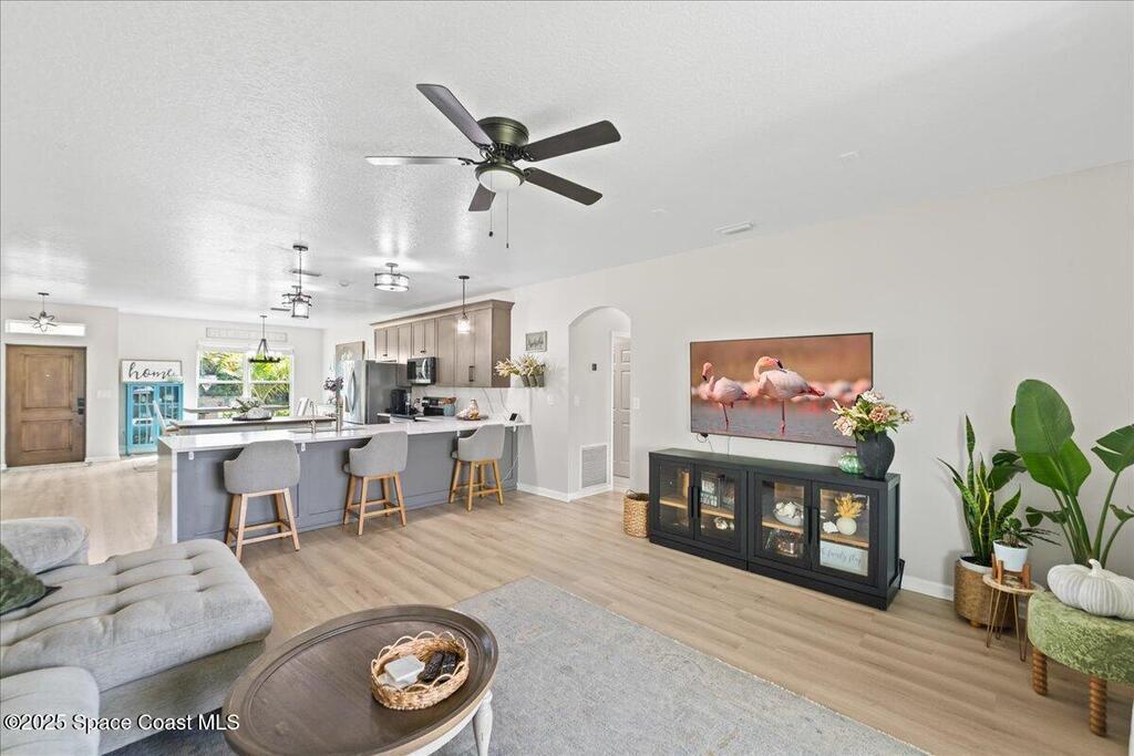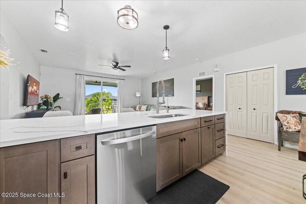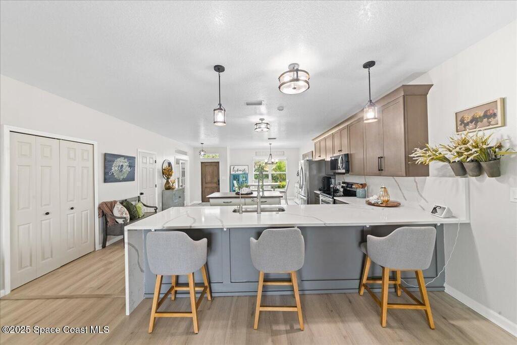 Experience the ultimate retreat in this stunning home, where every detail has been meticulously crafted. As you step inside, you'll be greeted by an open floor plan featuring 4 bedrooms and 2 stylish baths. The primary bath offers a large walk in shower with a separate soaking tub. Recent renovations have created this homes modern sophistication with sleek LVP flooring, impact windows and doors. The kitchen is a culinary haven, boasting elegant wood cabinetry, a rustic wood block island and gleaming quartz countertops. With solar fans in the attic, you can enjoy piece of mind knowing you're minimizing your energy footprint. Unwind on your lanai and soak in breathtaking sunsets surrounded by the tranquility and seclusion you deserve.