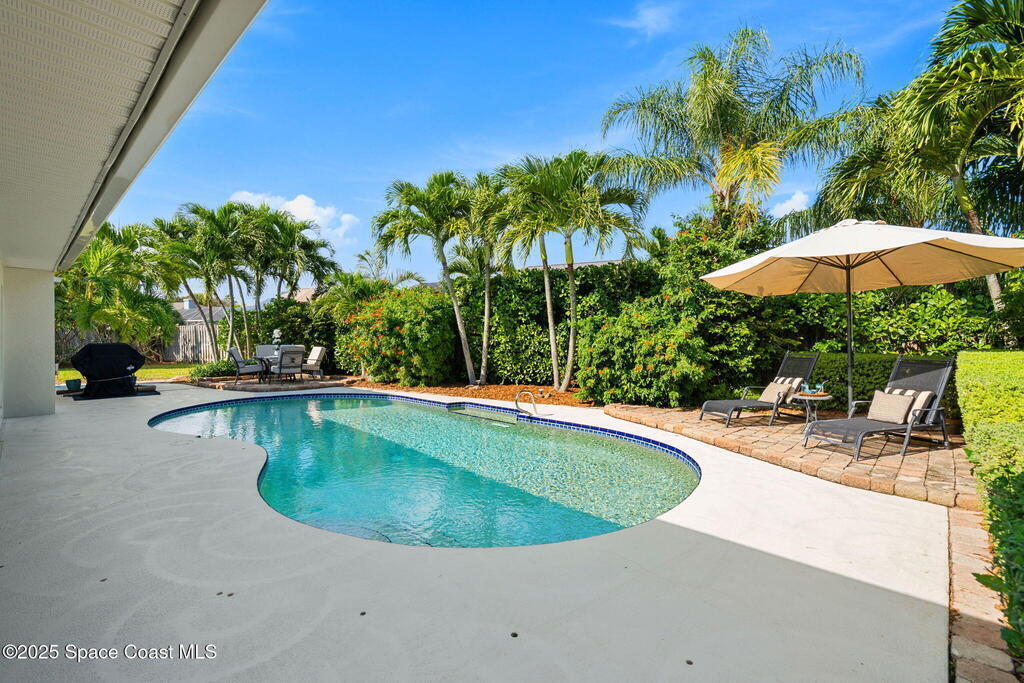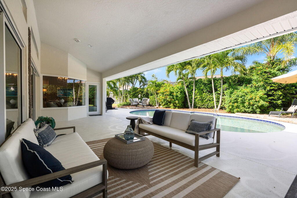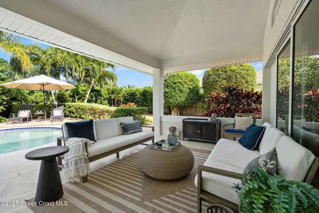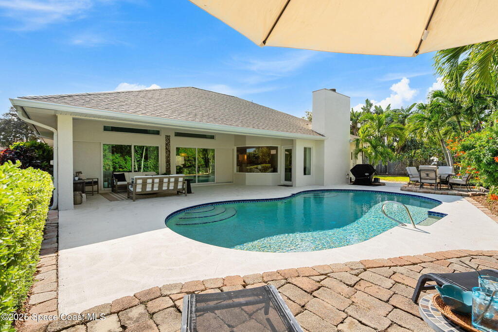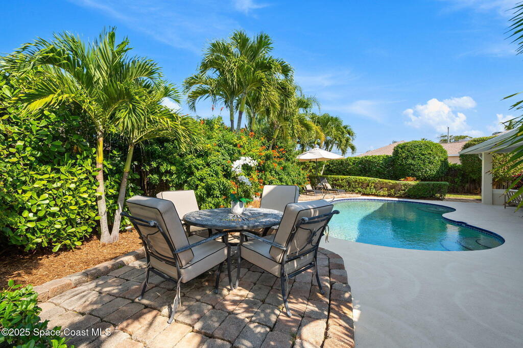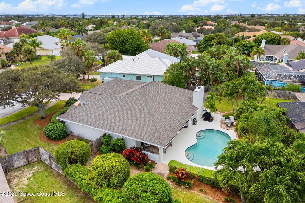 Discover this exquisite one-owner home nestled on a rare, oversized lot in a quiet cul-de-sac. Impeccably maintained and tastefully renovated with vaulted ceilings and tons of natural light residence offers the perfect blend of modern comfort and peace of mind. Step into the welcoming foyer, flanked by a spacious formal dining room and elegant living room. The open-concept kitchen flows seamlessly into a bright breakfast nook and inviting family room, creating the perfect setting for everyday living and entertaining.Enjoy the split floor plan featuring a luxurious primary suite with a spa-inspired bath. Step outside to your oversized, trussed porch overlooking a heated pool, ideal for year-round relaxation and outdoor gatherings. Additional highlights include New Roof (2023) Fresh Exterior Paint (2025) Impact Windows & DoorsA/C Mini Split in Oversized GarageJust a short bike ride or walk to the beach and river, this home truly offers the best of coastal living.