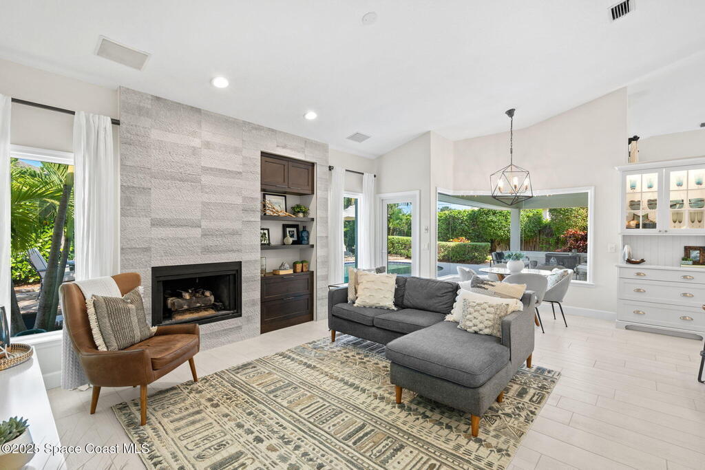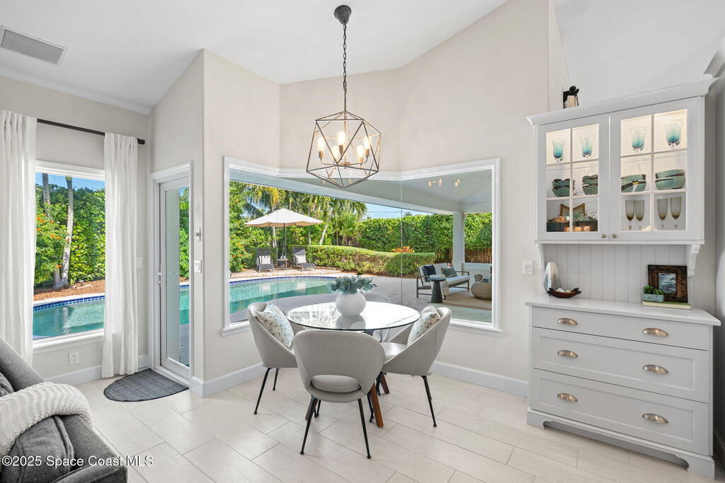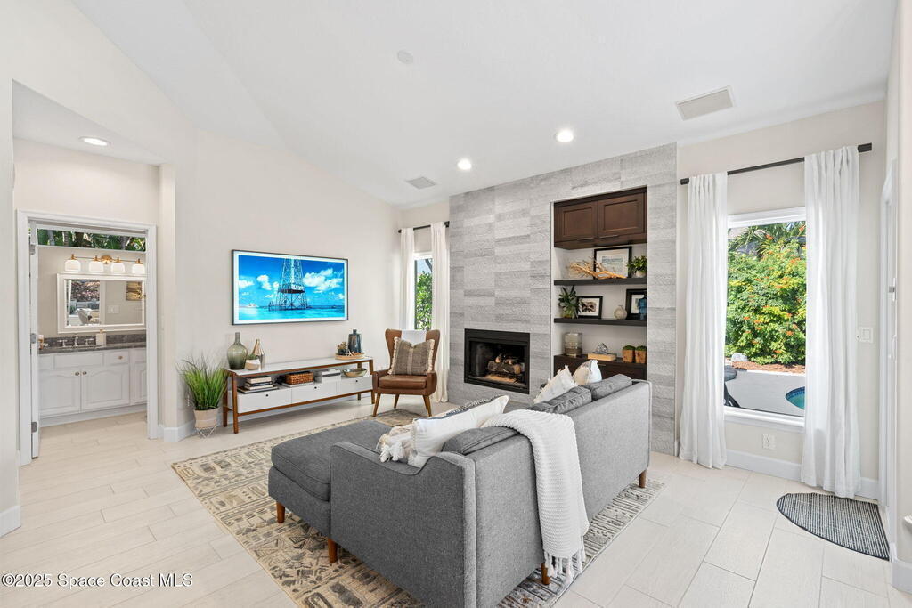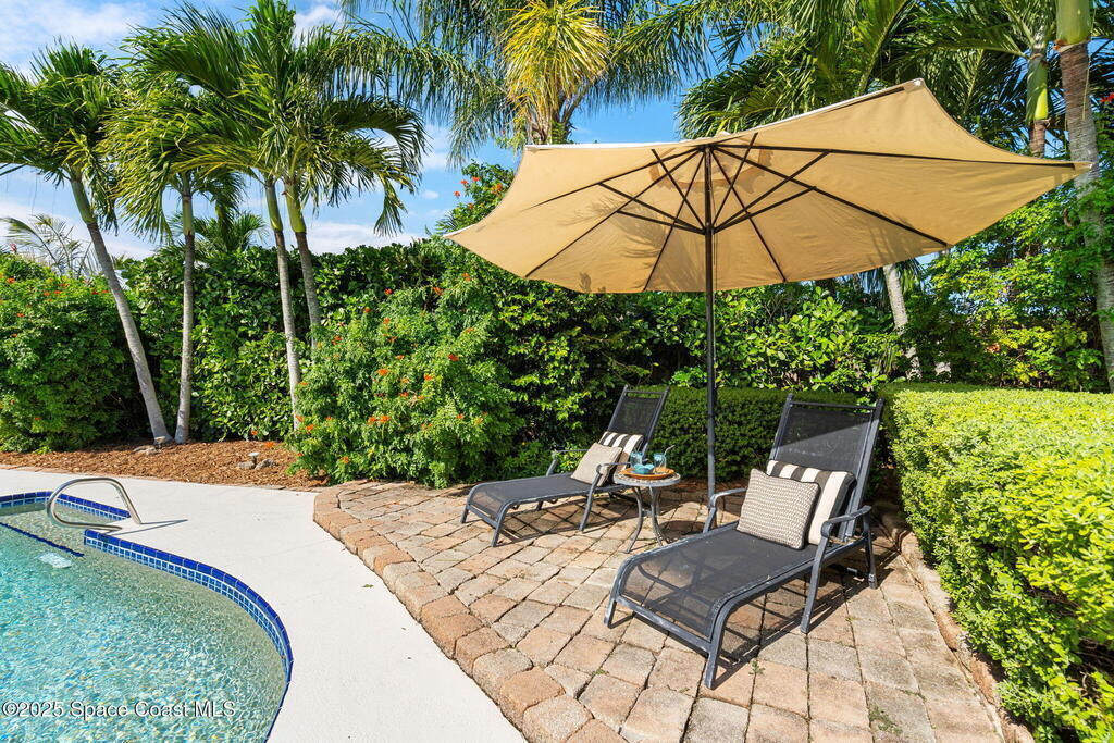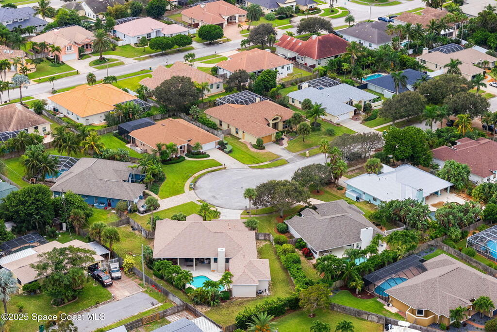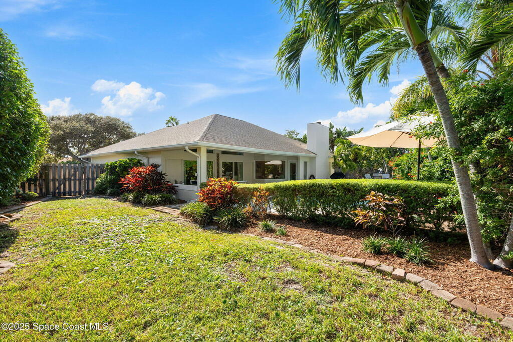 Discover this exquisite one-owner home nestled on a rare, oversized lot in a quiet cul-de-sac. Impeccably maintained and tastefully renovated with vaulted ceilings and tons of natural light residence offers the perfect blend of modern comfort and peace of mind. Step into the welcoming foyer, flanked by a spacious formal dining room and elegant living room. The open-concept kitchen flows seamlessly into a bright breakfast nook and inviting family room, creating the perfect setting for everyday living and entertaining.Enjoy the split floor plan featuring a luxurious primary suite with a spa-inspired bath. Step outside to your oversized, trussed porch overlooking a heated pool, ideal for year-round relaxation and outdoor gatherings. Additional highlights include New Roof (2023) Fresh Exterior Paint (2025) Impact Windows & DoorsA/C Mini Split in Oversized GarageJust a short bike ride or walk to the beach and river, this home truly offers the best of coastal living.