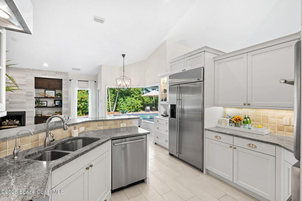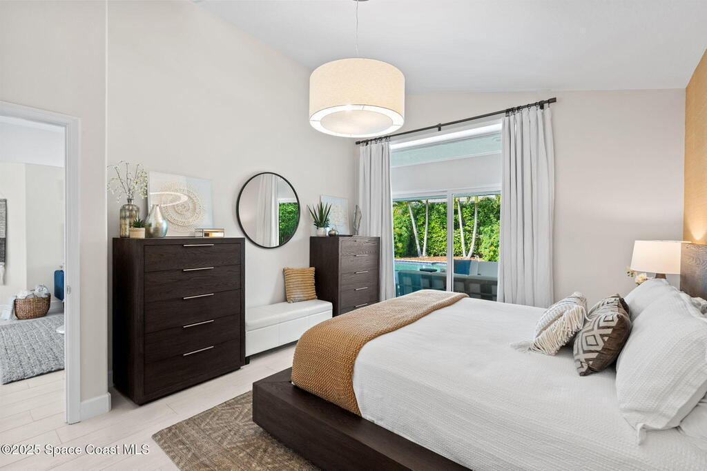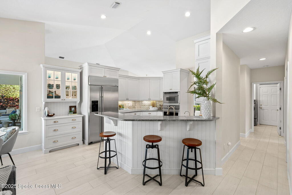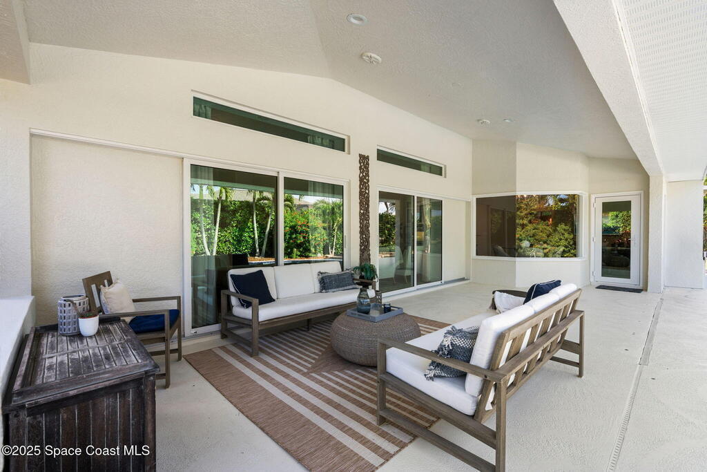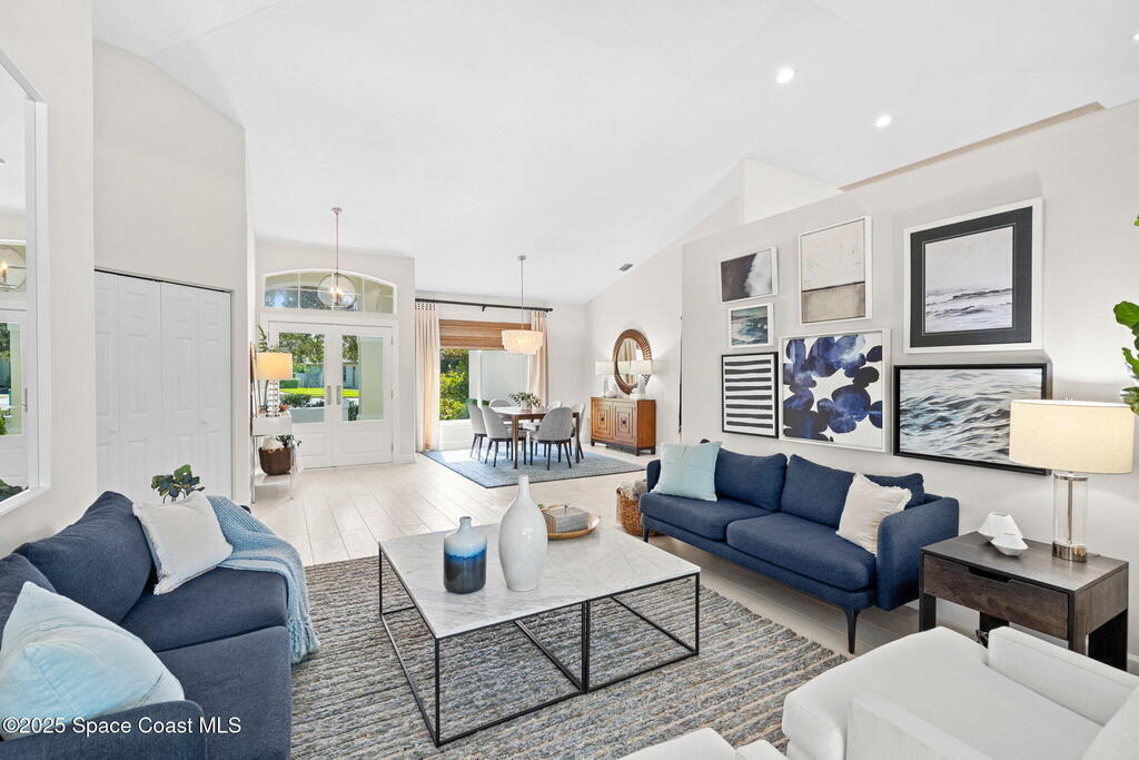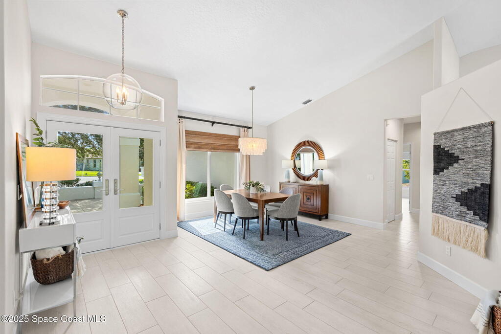Discover this exquisite one-owner home nestled on a rare, oversized lot in a quiet cul-de-sac. Impeccably maintained and tastefully renovated with vaulted ceilings and tons of natural light residence offers the perfect blend of modern comfort and peace of mind. Step into the welcoming foyer, flanked by a spacious formal dining room and elegant living room. The open-concept kitchen flows seamlessly into a bright breakfast nook and inviting family room, creating the perfect setting for everyday living and entertaining.Enjoy the split floor plan featuring a luxurious primary suite with a spa-inspired bath. Step outside to your oversized, trussed porch overlooking a heated pool, ideal for year-round relaxation and outdoor gatherings. Additional highlights include New Roof (2023) Fresh Exterior Paint (2025) Impact Windows & DoorsA/C Mini Split in Oversized GarageJust a short bike ride or walk to the beach and river, this home truly offers the best of coastal living.