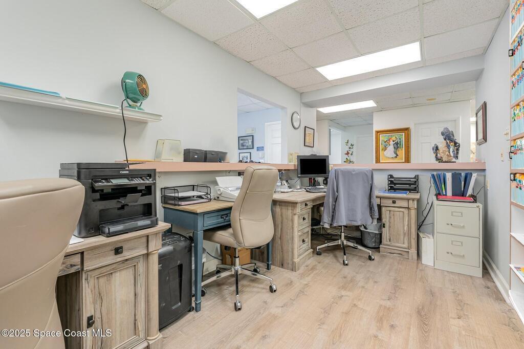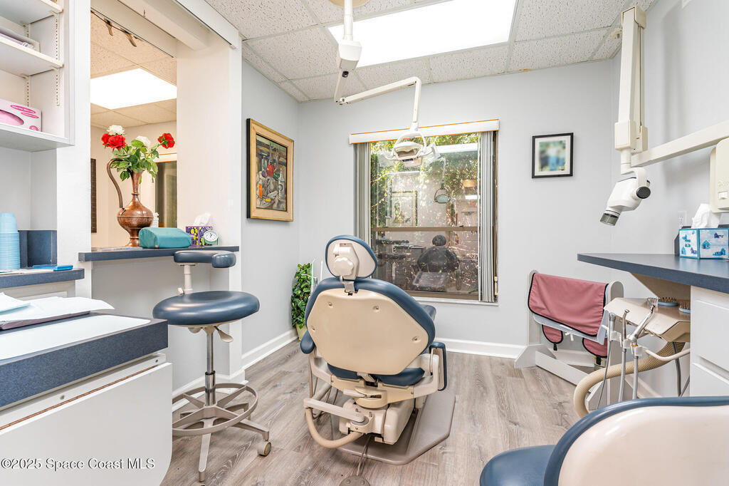 Endless possibilities in excellent location! Solid built Concrete Construction, Hurricane Shutters, New Roof 2020. Ideally zoned Community Commercial allowing for wide range of activities to support the surrounding community. Pristine condition, renovated with soft modern paint colors, laminate floors and carpet throughout. New HWH 2024, New Trane AC 2021. Currently used as endodontist office with a welcoming waiting room and spacious receptionist area. Ample storage, staff lounge, lab room, prep room, file room, and 2 bathrooms. Four active patient rooms with up to 7 available. Private office & separate staff entrance. 1 block from new Palm Bay Fire Station #7. Surrounded by diverse mix of residential neighborhoods, medical, child care, small business and major companies like L3 Harris Technologies. 3 miles to Florida Tech. Business not for sale. May sell some equipment/furnishings (consolidating locations). Easy set up for medical or dental clinic, spa, or professional office space.