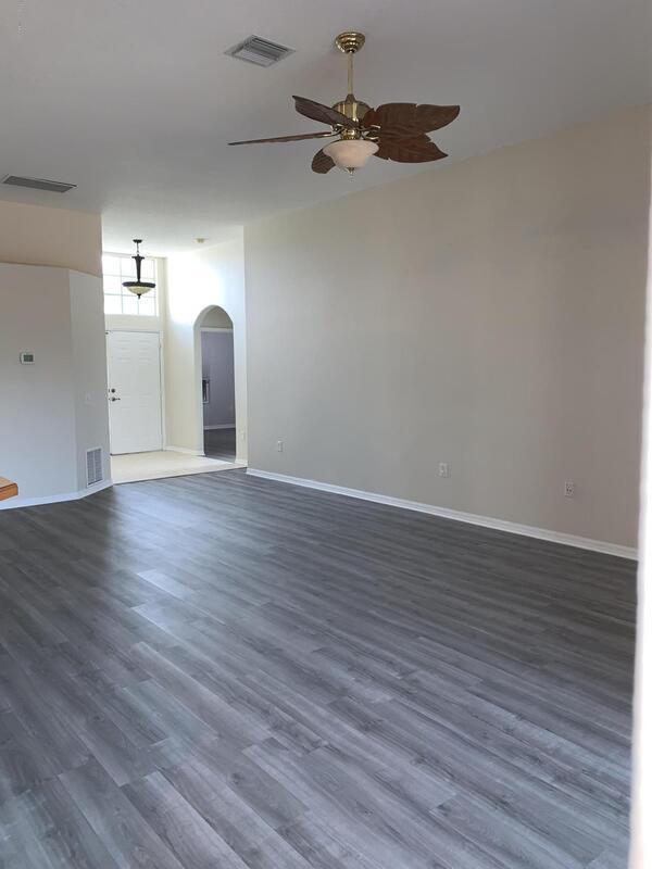 Central Merritt Island. Great location. Easy access to all highways and very close to the beach. OPEN Floor Plan with all vinyl flooring thru out the home. Disappearing sliders for the great view of the back yard landscaping. 12' Vaulted ceiling. Easy to close STORM shutters, Plantation style and accordion.Kelly Park Boat ramp is with in minutes of the home. Community pool is at entrance of community. Lawn Service included in the rent. Elementary school within short driving distance. View the Launches from your back yard or head to to Kelly Park.