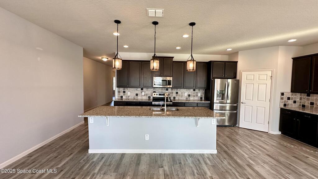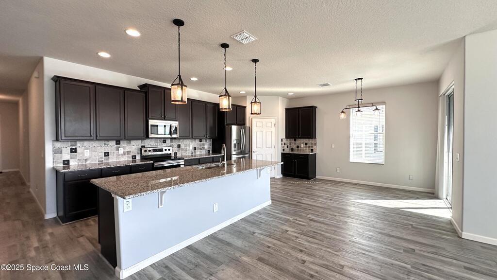 JUST REDUCED! Built in 2020 and beautifully maintained, this spacious 4-bedroom, 2-bath rental offers just under 2,000 square feet of thoughtfully designed living space. Enjoy an open floor plan with luxury vinyl plank flooring throughout--no carpet, easy upkeep! The modern kitchen features a large island, ample counter space, and plenty of cabinetry--perfect for cooking, entertaining, or working from home. The split-bedroom layout includes roomy guest bedrooms and a large primary suite with a walk-in closet and private bath featuring double sinks, an upgraded vanity, and a walk-in shower.Additional highlights include a dedicated laundry room with wash tub, a fully fenced backyard with peaceful pond views, and a screened-in, pavered patio plus extended outdoor space--ideal for relaxing or hosting friends. Convenient location, stylish finishes, and functional design make this rental a standout choice.