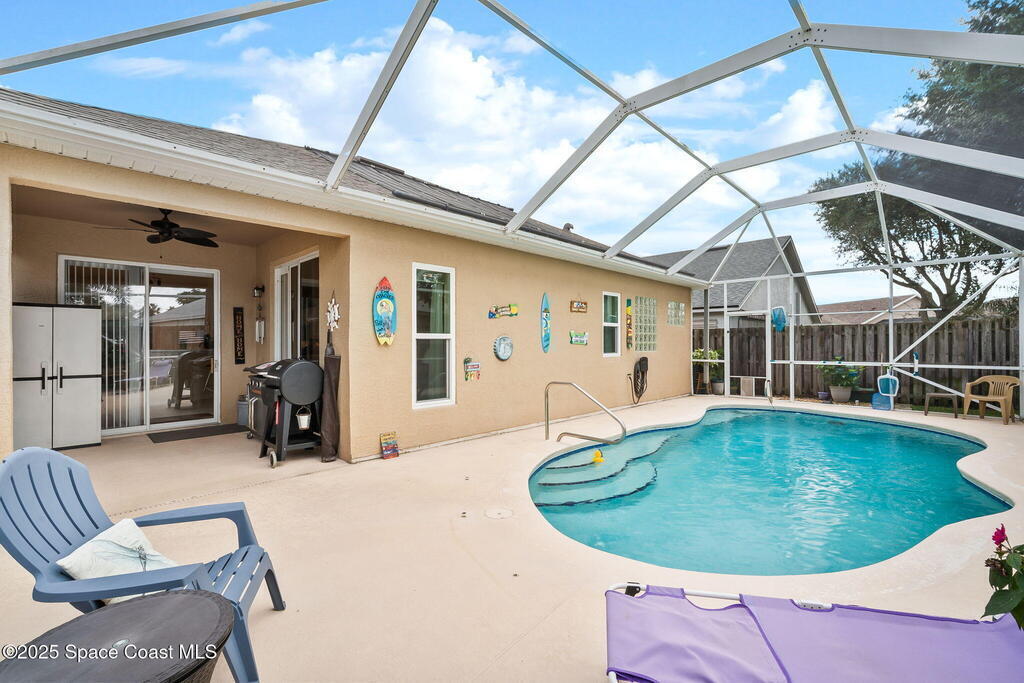 Welcome to Viera! This incredible 3-bedroom, 2-bath home features its own private, heated pool for year-round enjoyment. Recent upgrades include newer solar panels for the pool (2019), a new pool pump (2023), newer kitchen appliances (2023), a newer roof (2019), a new hot water heater (2025), and hurricane-impact windows throughout. The fully fenced backyard is perfect for pets and privacy. Save thousands on insurance and energy costs with these updates--all while enjoying a low-maintenance, stress-free lifestyle. Located close to shopping, beaches, and the Space Center, this home offers true Viera convenience - where hopping in your golf cart for dinner or errands is part of everyday life. While the neighborhood features a beautiful community pool, few homes in the neighborhood offer the luxury of having your own private pool. Don't miss your chance to own a piece of real estate in the booming Viera area!