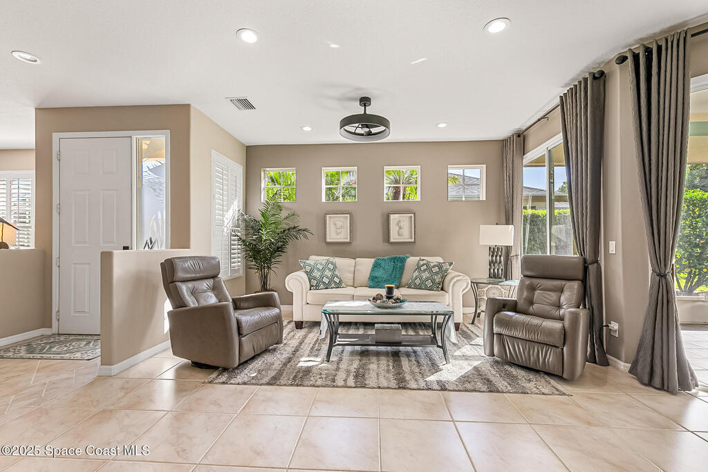 This meticulously maintained and beautifully updated single-story home is located in the sought-after gated community of Magnolia Pointe in Suntree. Used as a seasonal second home, this residence shows true pride of ownership -- pristine, move-in ready, and gently lived in. Featuring 2 beds, 2 baths, plus an open den (easily converted to a 3rd bedroom), the home offers a spacious and open 1,656 sq ft floor plan. The living and dining areas flow effortlessly into a bright, upgraded kitchen with granite countertops, stainless-steel appliances, and custom cabinetry. High ceilings, plantation shutters, and designer finishes add to the elegant feel throughout. Enjoy peaceful mornings or relaxing evenings on the screened and tiled lanai, overlooking a private, protected preserve -- a perfect blend of comfort and nature.Additional highlights include ; Tile and laminate flooring throughout (no carpet),2-car garage with storage space, Newer roof and exterior paint maintained by the HOA-