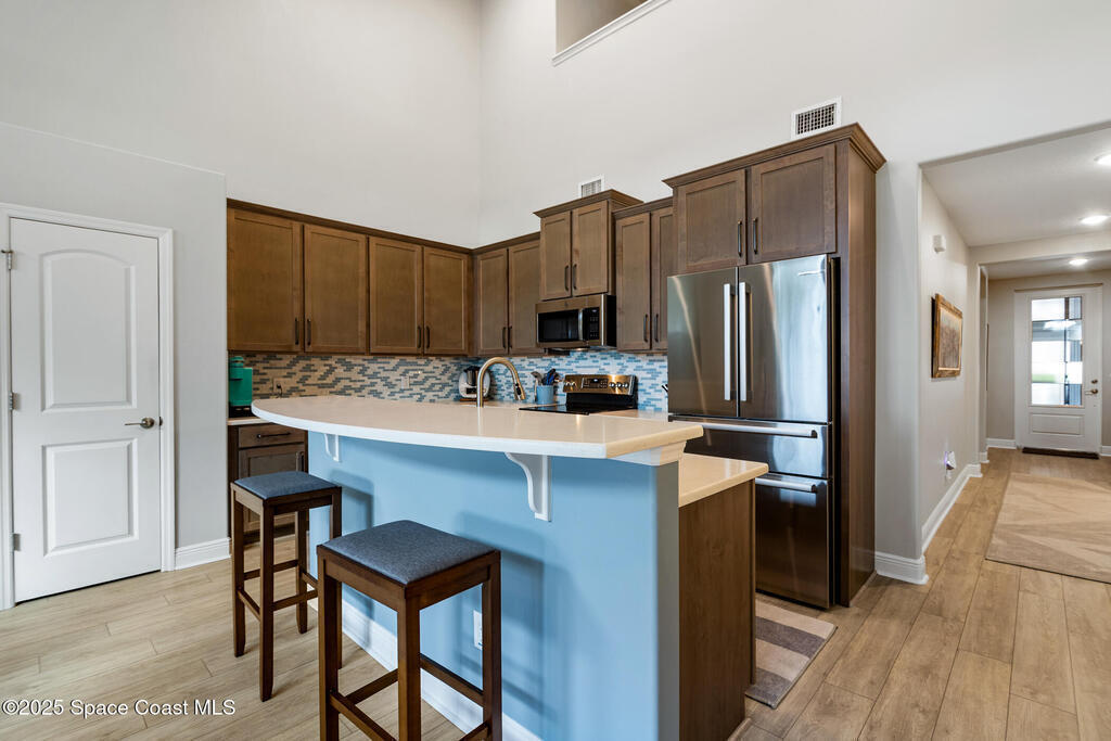 Desirable Montecito Townhouse within walking distance to Hightower Beach!! 2021 build, freshly painted, boasting vaulted ceilings, ground floor Master Ensuite with walk-in ''Closets by Design'', dual vanities and walk-in, tiled shower; large and open living floor plan, luxury vinyl flooring with welcoming kitchen, custom back splash, breakfast bar, Bosch refrigerator, double convection oven, Aquasona water system; soft pull blinds throughout; Upstairs offers 2 large guest bedrooms, guest bath, and loft overlooking the living space below; Sliders open to a beautiful TREX deck and Pergola for enjoying the beachside FL weather!! Remote shutters on front windows and front entry window; Gorgeous Clubhouse offering pool and fitness facility. Closest proximity to beach access walkway and visitor parking! Centrally located in Satellite Beach near Space Force Base and Pineda Cswy with access to I-95.
