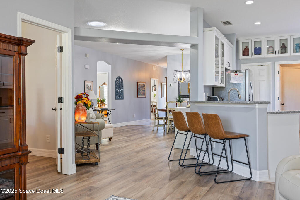 Extensively updated 4-bedroom lakefront home in the highly sought-after Indigo Crossing community of Viera. Major improvements include a 2024 roof with solar tubes, luxury vinyl flooring, fresh interior paint, remodeled baths, and 5'' baseboards. The raised and enclosed Florida room adds valuable living space with impact rated windows and its own AC unit (2023). The kitchen features 42'' shaker cabinets, stainless appliances, expanded lighting, a walk-in pantry, and extra cabinetry for storage. The primary suite offers a beautifully renovated bath and expanded closet. Additional updates include a 2022 water heater, storm door, custom sunroom shade, gutters, and a termite bond (2023). Enjoy a calm lake view in a community offering a pool, park, basketball court, and playground--all within a walk or bike ride or golf cart ride to Viera schools, shopping, and dining.