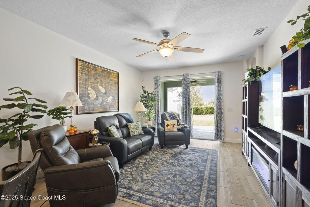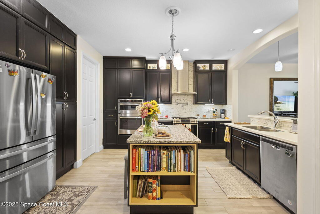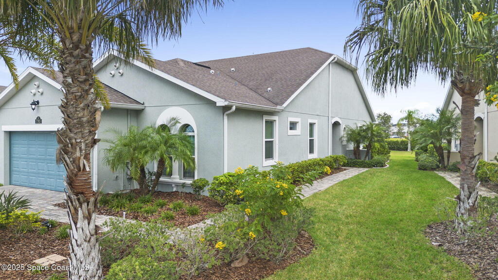 Perfectly landscaped and beautifully maintained end unit, this freshly painted home offers both style and functionality in every corner! The custom kitchen is a true showpiece--featuring an abundance of cabinets with pullout shelves, granite island with electric, Corian countertops, a gas stove and oven, double oven with built-in microwave, pot filler, and custom built-ins for decorative displays. Primary bathroom has 2 sinks, walk-in closet, garden tub and separate shower! Brand new carpet in the huge bedrooms complements the tile throughout the rest of the home, while the professionally enclosed garage adds valuable living space under air (can be converted back if desired). Enjoy all-new LED lighting and a bright, open layout. Community amenities include a sparkling pool, clubhouse, fitness room, and playground--all just minutes from the best shopping and dining in Viera!