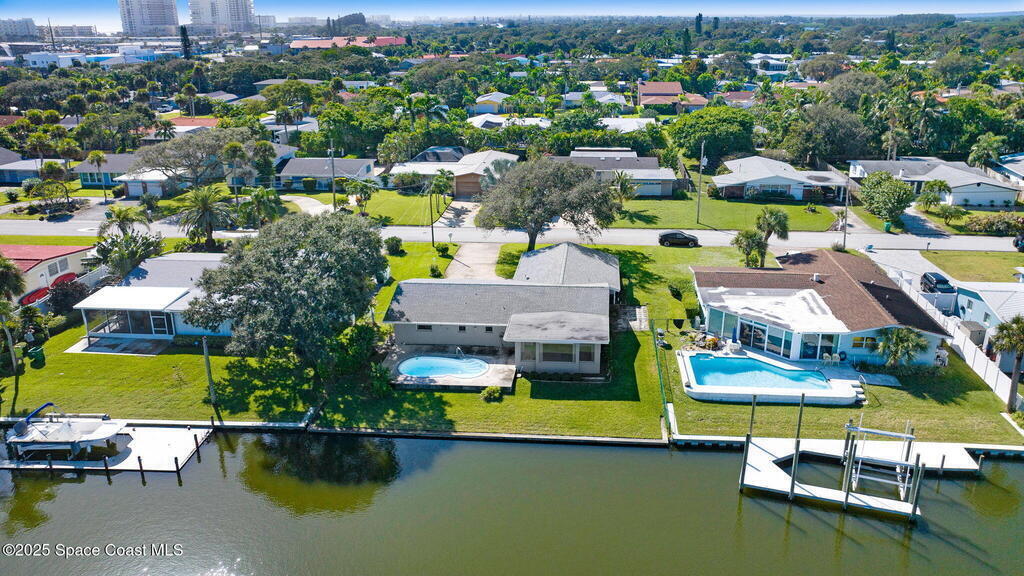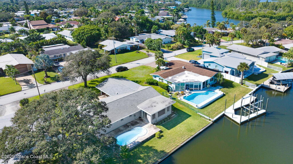 This is your opportunity to live on the water with a pool in the heart of Cocoa Beach! Right across from Lori Wilson Park! Great bones with the opportunity to make it your own! Light & bright eat-in kitchen with a corner front window can easily be remodeled into a modern open kitchen overlooking the two big great rooms! Loads of natural light and neutral colors! Terrazo floors can be preserved or put your choice of flooring down! Open pool overlooking the water! Seawall in great shape with plenty of room for a dock! Fenced yard plus a sprinkler system on reclaimed water! A/C only 1 yr old! Exterior paint only a year old! Seamless gutters! Easy ride to the Banana River or pop over to the beach! No HOA! Time to enjoy some beachside living! Easy to show!
