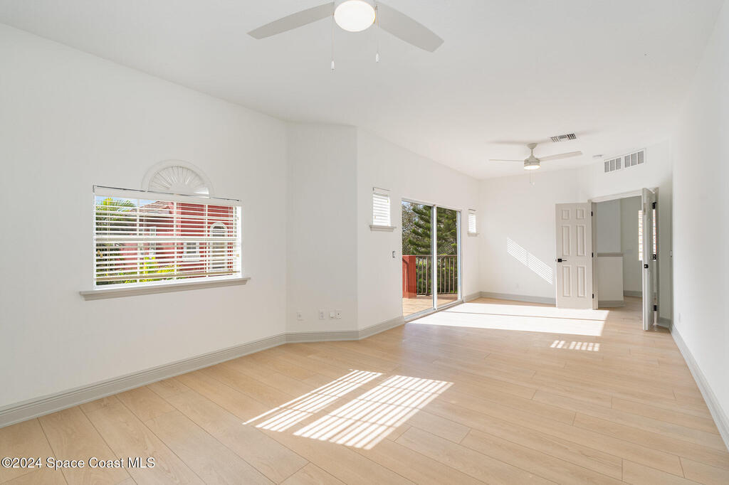 Beautifully updated w/poolside views, 3 bdrms + office & a 3-MINUTE WALK TO THE BEACH! This coastal condominium community stands out from the rest! Unattached units offer the feel of a single-family home while granting the benefits of worry-free condo living. This sunny bungalow boasts a 2023 A/C, TWO balconies & modern interiors! NEW solid surface floors span the downstairs, coursing through a bright living room w/a triple slider to a tropical patio overlooking the crystal-blue community pool. A granite b-fast bar kitchen features SS appliances, a frosted glass door pantry & white crown-molded cabinetry w/custom wine cubbies. The dining area could also be used for additional living. All bdrms are privately located upstairs. Double doors open to the sizable primary retreat exhibiting a personal balcony perched over the pool, a large walk-in closet, 2 sinks, a jetted tub & tiled shower. 2 extra bdrms share a 2nd balcony facing the front of the property. Schools & conveniences nearby!