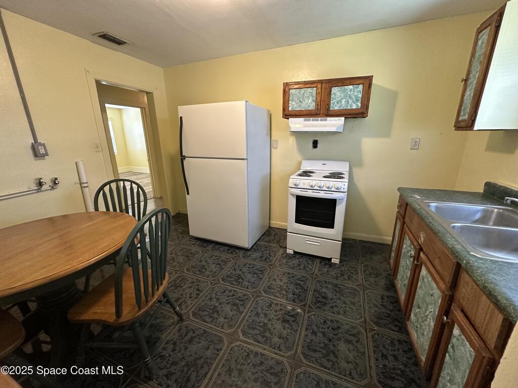 Welcome to this charming and move-in ready 3-bedroom, 2 bath home located in the heart of Titusville. Nestled on a quiet residential street, this home offers a comfortable and functional layout with tile flooring throughout, fresh interior paint, and plenty of natural light. The spacious living area flows seamlessly with each bedroom offers generous space. Step outside to a fully fenced backyard--perfect for outdoor gatherings, pets, or simply enjoying the Florida sunshine. Ideally located near local schools, parks, shopping, and just minutes from Kennedy Space Center, Playalinda Beach, and major roadways for an easy commute. Property includes a stove, refrigerator, kitchen table and chair set as well as private driveway for convenient off-street parking. Rental requirements: First, last and security, income 2x rent. No pets, evictions or criminal record. Tenant pays utilities.