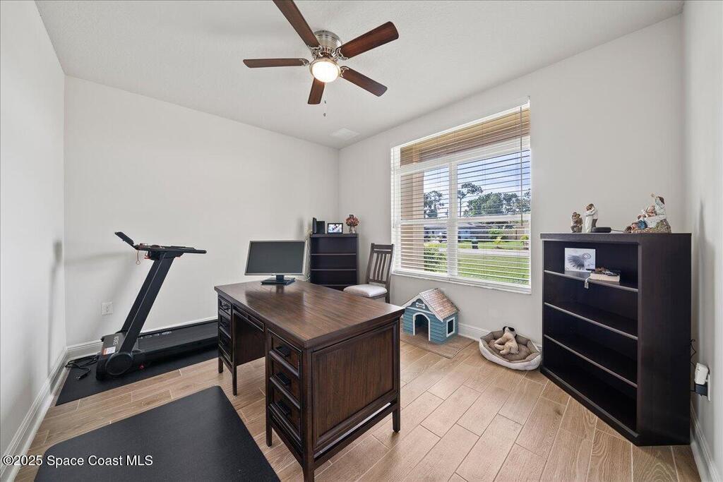 Step into this beautifully updated 3-bedroom, 2-bath home with a dedicated office and over 2,000 square feet of thoughtfully designed living space. Built in 2021, this modern residence combines comfort, functionality, and style in one seamless package.Inside, you'll find a spacious open floor plan that's perfect for entertaining or everyday living. The upgraded kitchen is a chef's dream, featuring granite countertops, 42-inch soft-close cabinets, a stylish tiled backsplash, stainless steel appliances, and multiple pantries for abundant storage.The living room is anchored by a striking stone accent wall with a sleek electric fireplace, adding warmth and character to the space.Retreat to the oversized primary suite with dual closets and a spa-like bathroom offering a granite dual-sink vanity and a fully tiled walk-in shower with a frameless glass door. The guest bedrooms are generously sized and share a well-appointed guest bath with its own walk-in tiled shower.